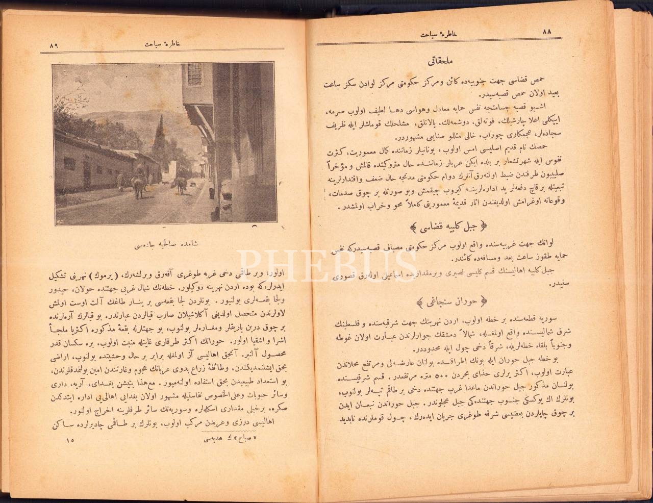 MUSAVVER HİNDİSTAN SEYÂHATNÂMESİ (1. Kısım); Selanikli Tevfik, Mihran Matbaası, İstanbul 1318, 208 s. Mekâtib-i Askeriyye-i Şâhâne Şâkirdânına Mahsûs MÜSVEDDE NUMÛNELERİ, Fazıl, Mekteb-i Fünun-ı Harbiye-i Şahane Matbaası, İstanbul 1314, 108 s., 17x25 cm, bazı sayfaları yırtık ve sırtı kısmen ayrık haliyle