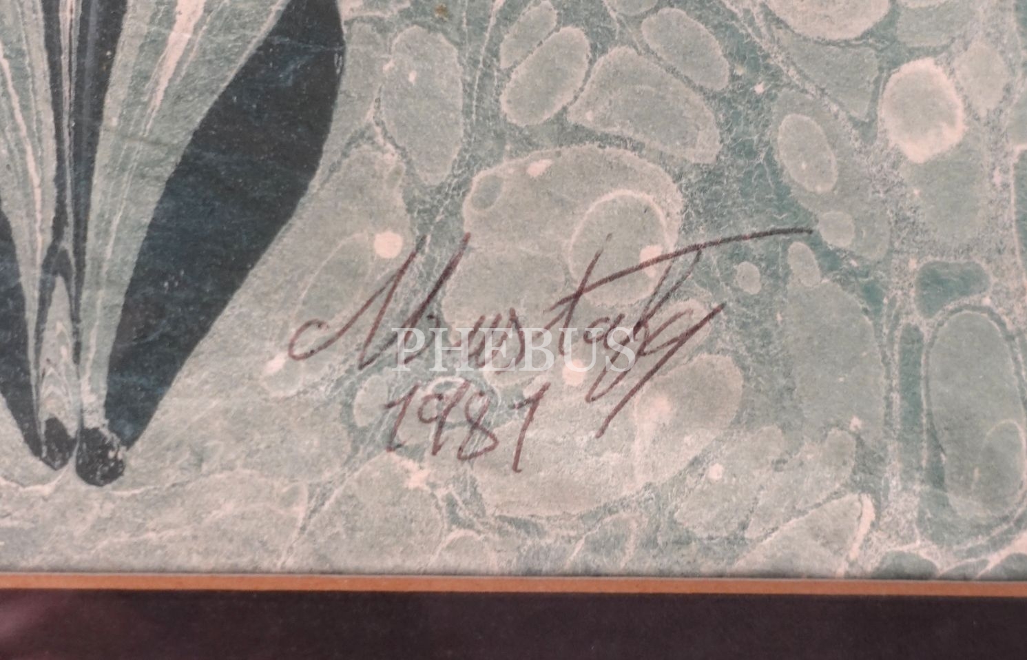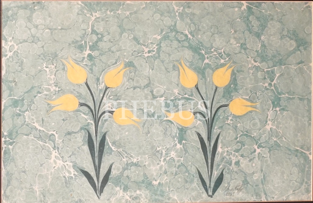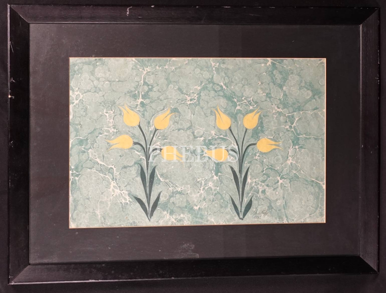 Mustafa Düzgünman 1981 tarihli çiçek ebrusu, 50x67 cm