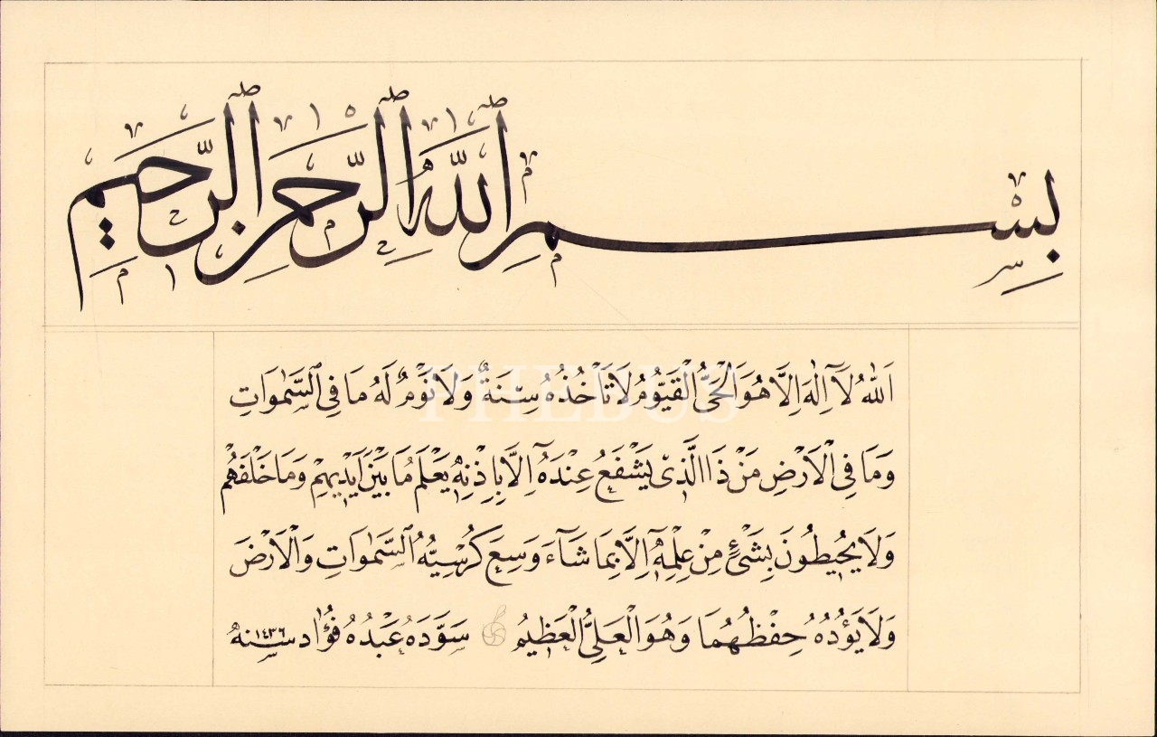 Fuad Başar ketebeli, Sülüs Besmele ve nesih Ayete'l Kürsi, 20x30 cm