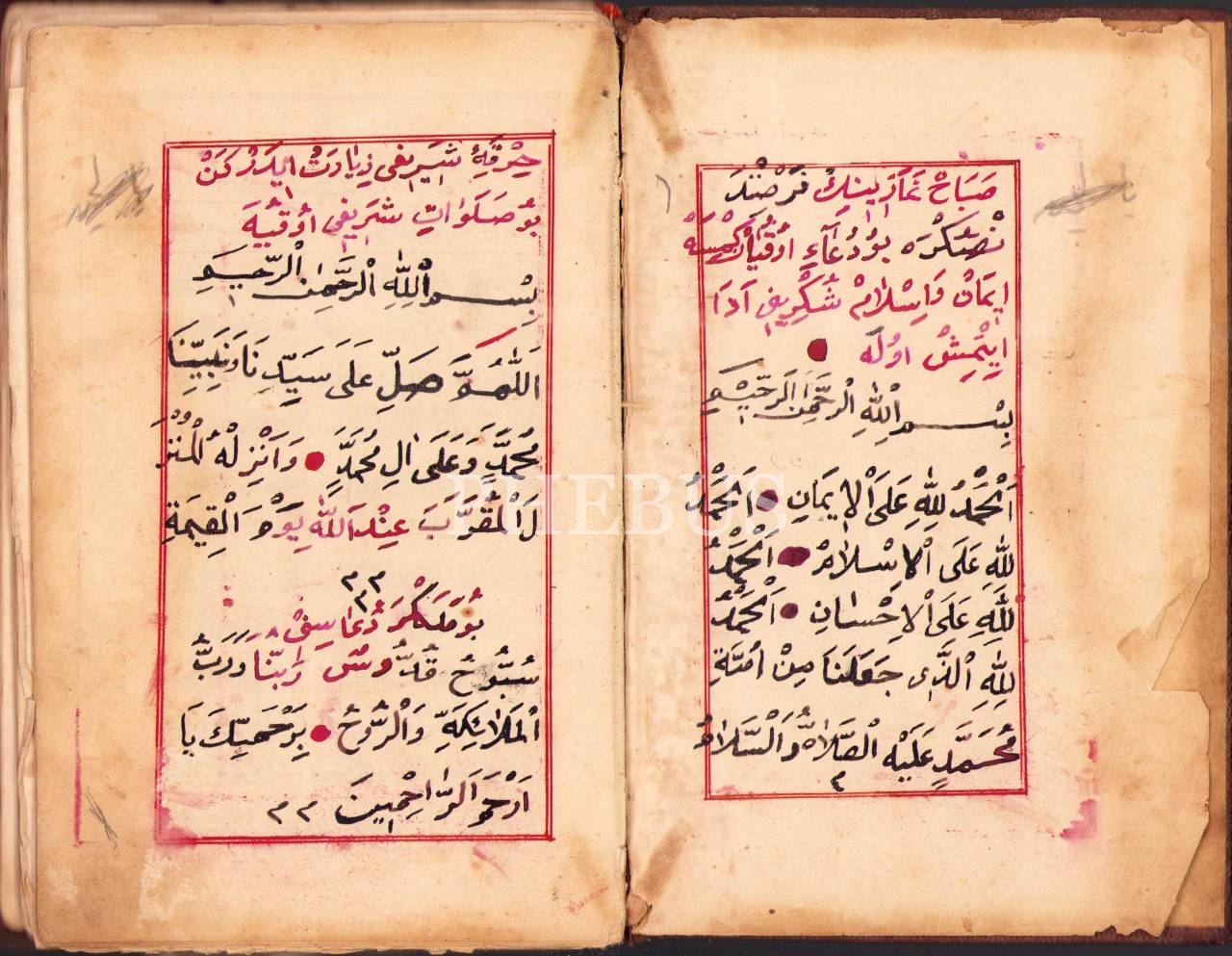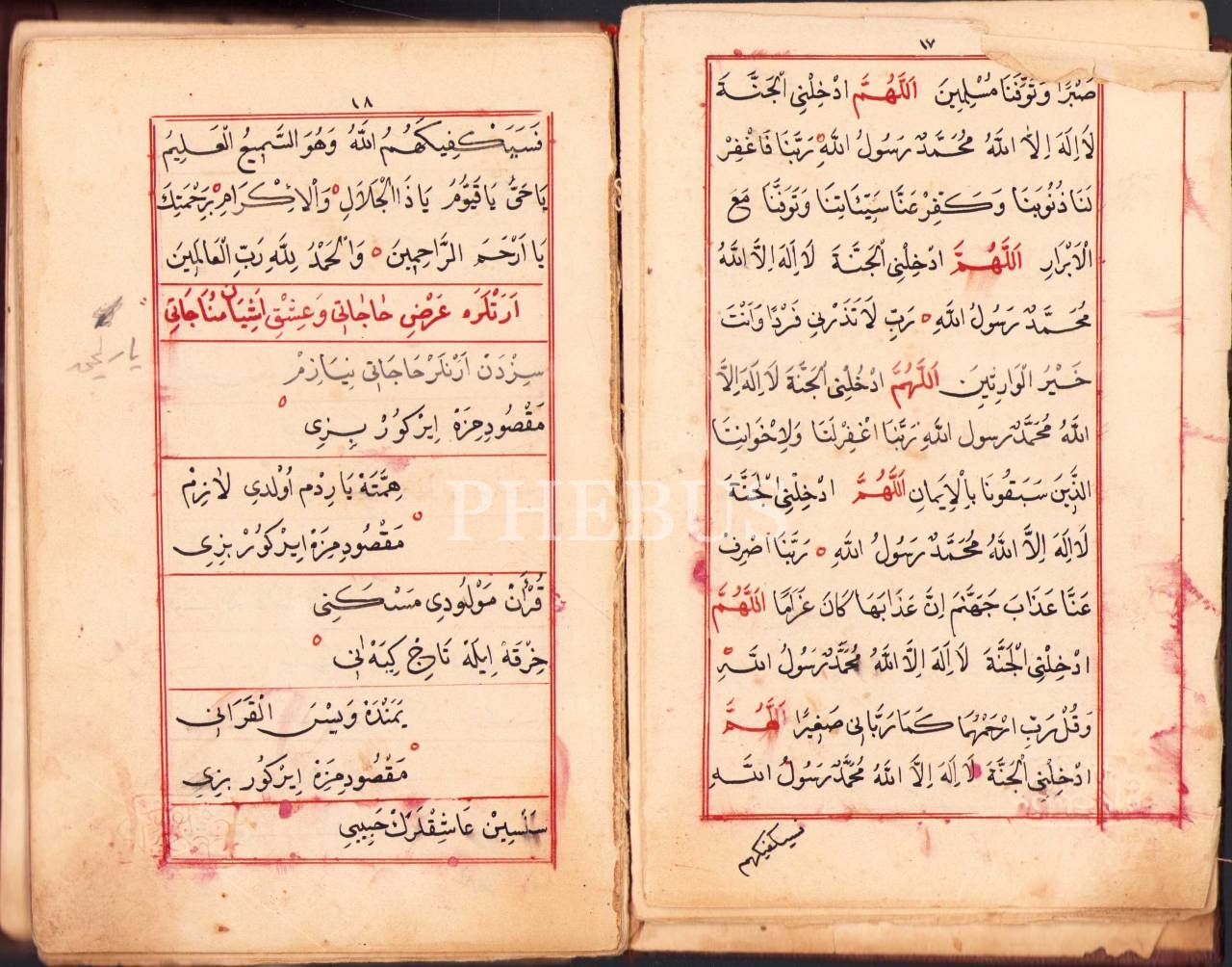 Deri ciltli ve miklepli el yazması Osmanlıca-Arapça dua mecmuası, 485 sayfa, 12x19 cm