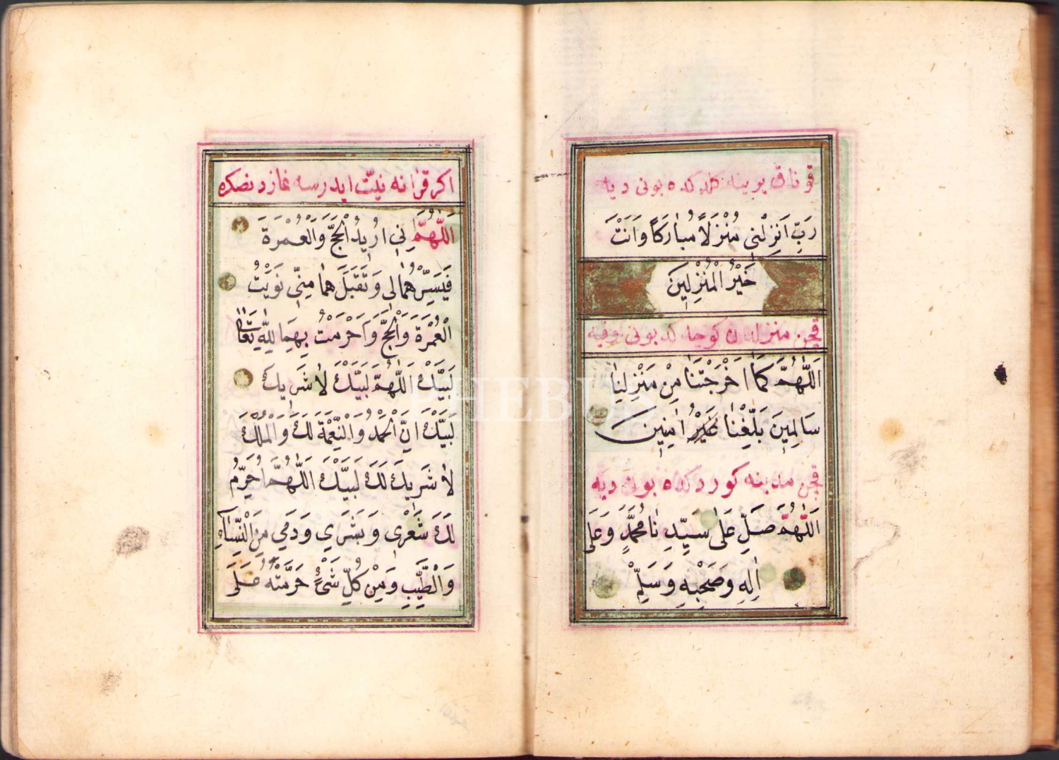 Arapça-Osmanlıca el yazması dua mecmuası, deri ciltli, 64 sayfa, 9x14 cm