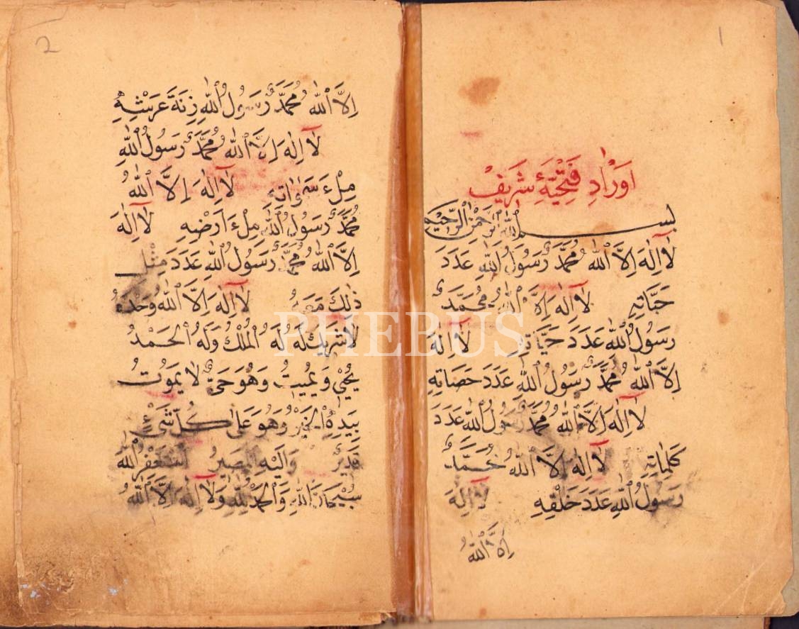 Evrad-ı Fethi Şerif dua mecmuası, Arapça el yazması, deri ciltli ve mıklepli, 52 sayfa, 10x12 cm