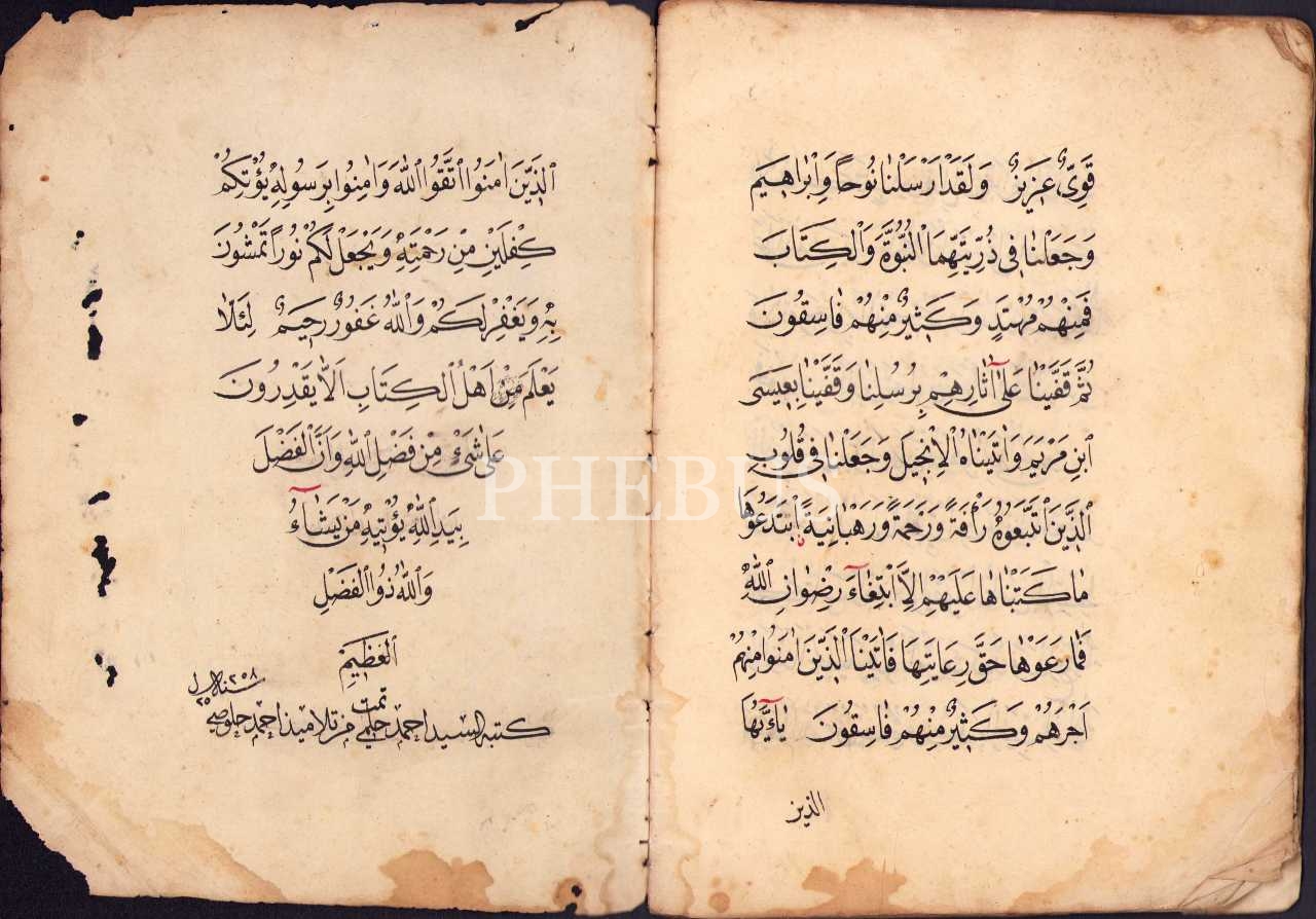Ahmed Hulusi'nin öğrencilerinden es-Seyyid Ahmed Hilmi'nin hattı ile ayetler, 44 sayfa, 14x44 cm