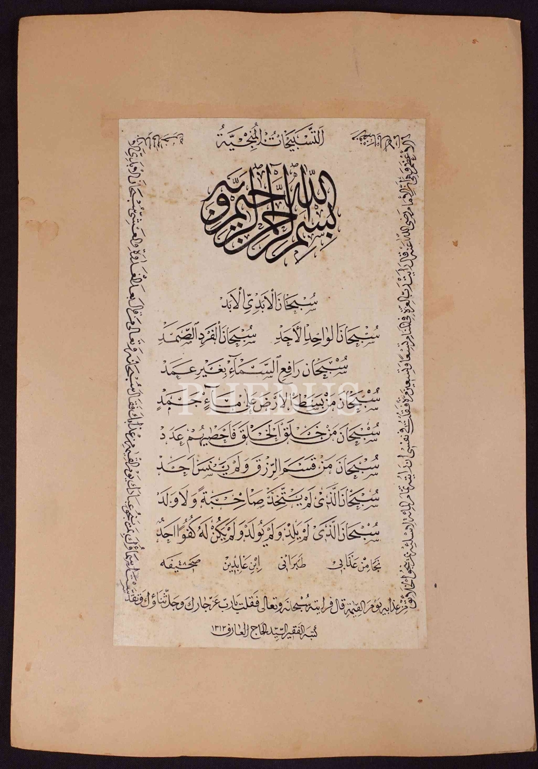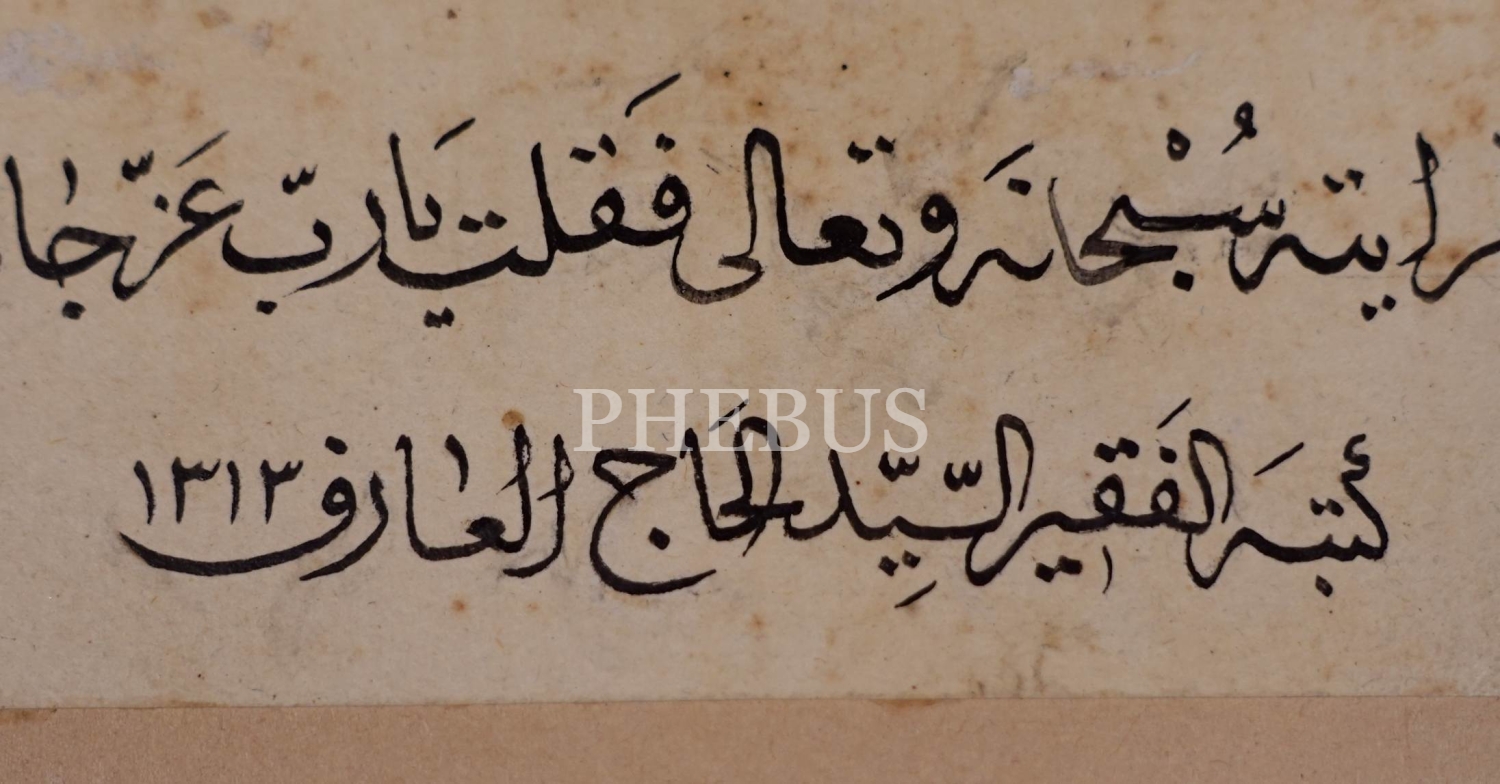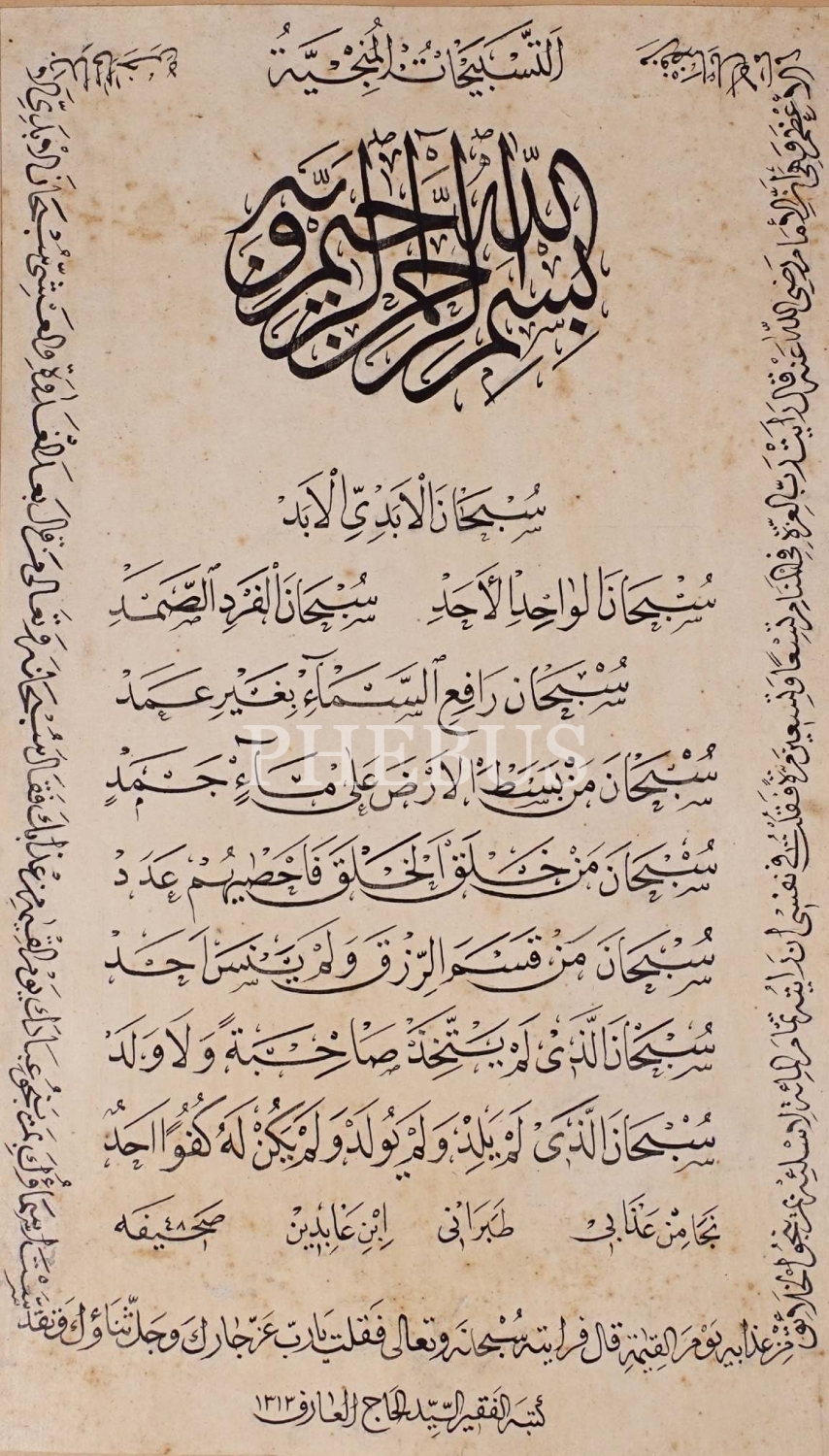 Hacı Arif ketebeli, 1313 tarihili sülüs-nesih "Tesbihât-ı Münciyye" duası, 21x35 cm