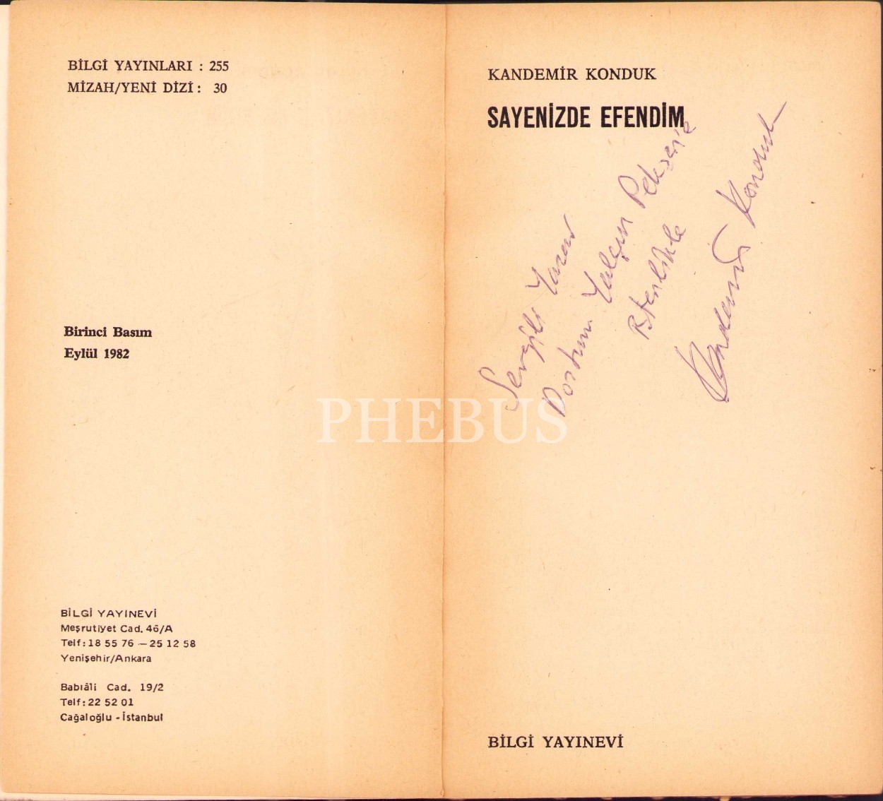 SAYENİZDE EFENDİM, Kandemir Konduk, 1982, Bilgi Yayınları, 196 sayfa, 11 X 19 cm… Gazeteci Yalçın Pekşen'e imzalı…