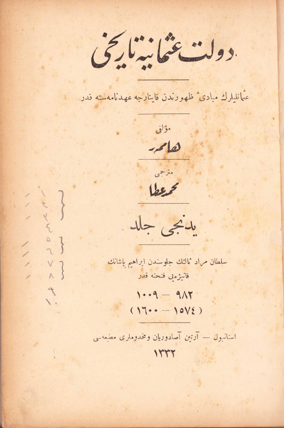 Devlet-i Osmaniye Tarihi - Osmanlıların Mebadi Zuhurundan Kaynarca Ahidnamesine Kadar, 7.cilt, Joseph Hammer-Purgstall, çev., Mehmed Ata