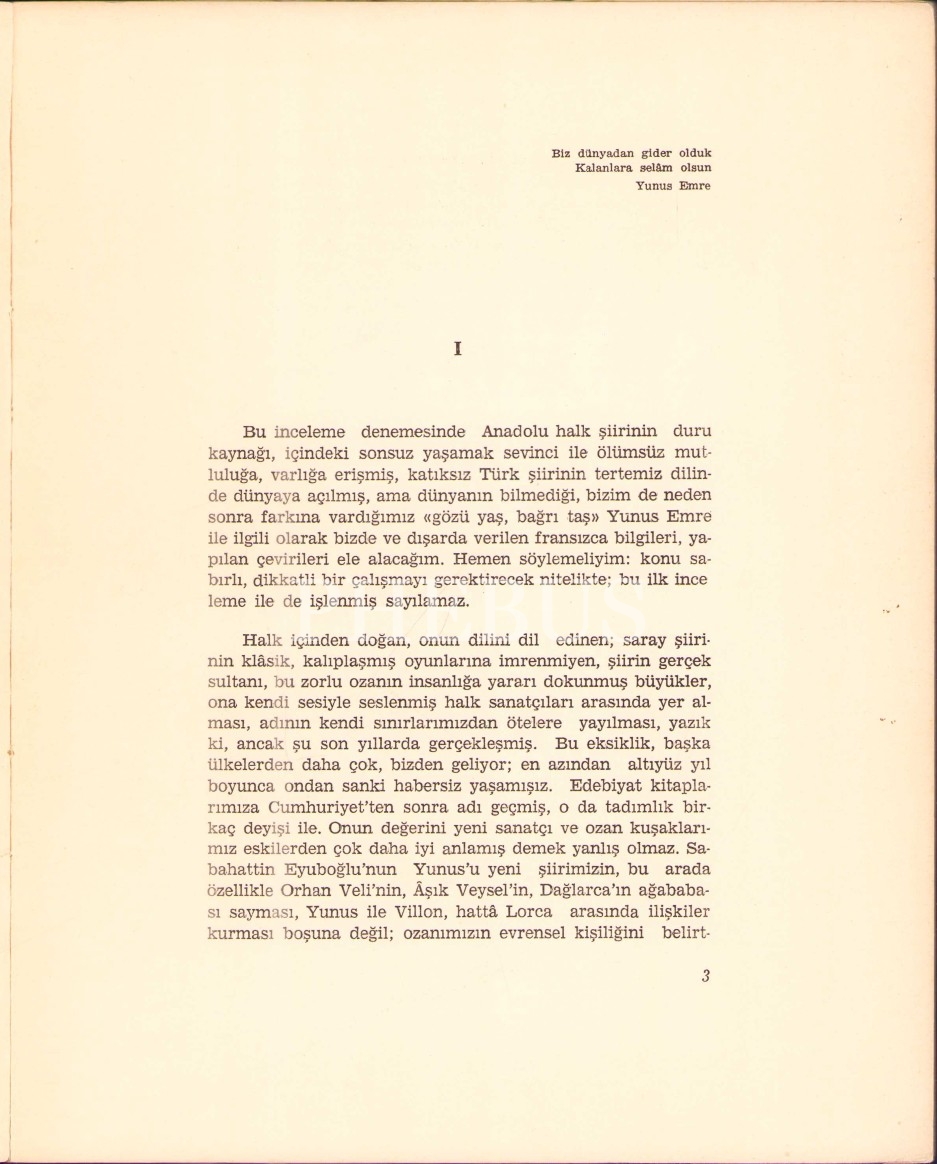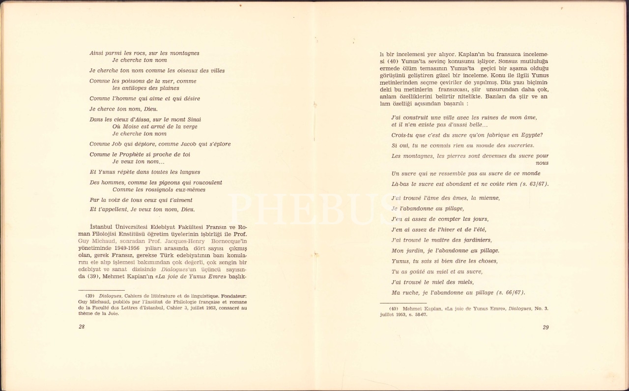 Fransız Dili ve Edebiyatı Profesörü Bedrettin Tuncel'in (1910 - 1980) Yunus Emre'nin Fransızcadaki izlerini araştırdığı bu küçük inceleme, kaliteli kâğıda ve yalnızca 200 adet basılarak numaralanmış. Müzayedeye sunulan eser, 132 numaralı nüsha olup romancı ve hikâyeci Şahap Sıtkı İlter'e imzalanmıştır.