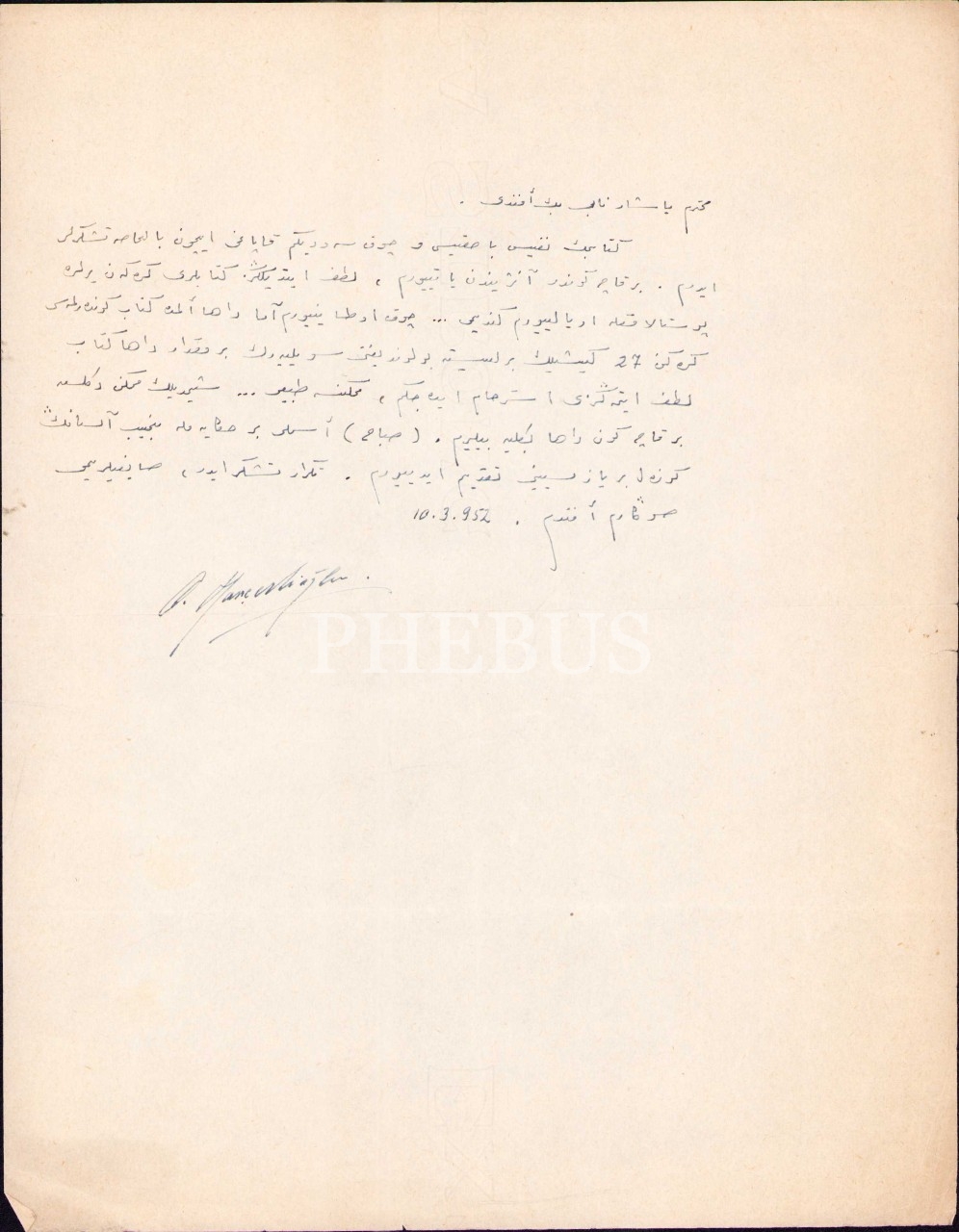 ORHAN HANÇERLİOĞLU'NDAN YAŞAR NABİ NAYIR'A MEKTUP, 23 X 29,5 cm...