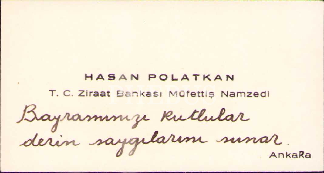 DEMOKRAT PARTİ DÖNEMİ MALİYE BAKANI HASAN POLATKAN'IN, ÜZERİNDE EL YAZISI BULUNAN KARTVİZİTİ, 9 X 5 cm…