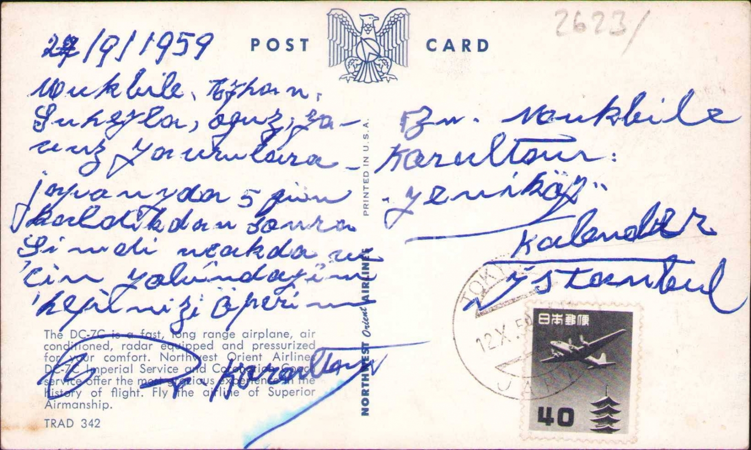 1950 - 1960 yılları arasında TBMM Başkanlığı yapan ve 27 Mayıs Darbesi'yle görevine son verilerek idamla yargılanan ancak cezası ömür boyu hapse çevrilen Refik Koraltan'ın (1889 - 1974) eşine yazdığı 27.9.1959 tarihli kart…