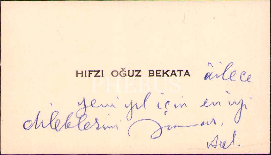 HIFZI OĞUZ BEKATA İMZALI RİCA MEKTUBU VE KARTVİZİT… 15 X 21 cm - 9 X 5 cm…