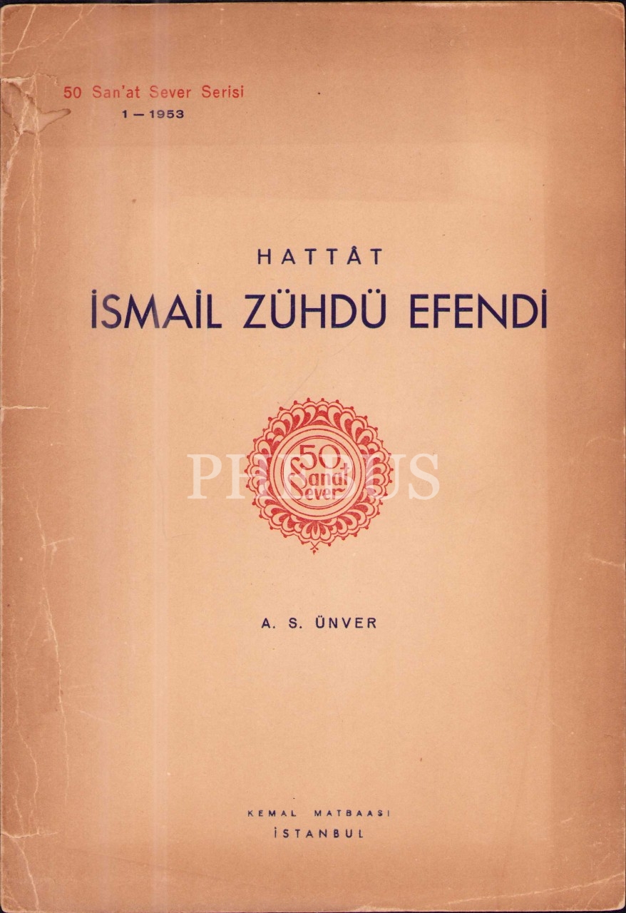 Hattat İsmail Zühdî Efendi'nin Süheyl Ünver'in kaleme aldığı kısa biyografisi ve 14x20 cm ebatında sülüs-nesih kıt'ası