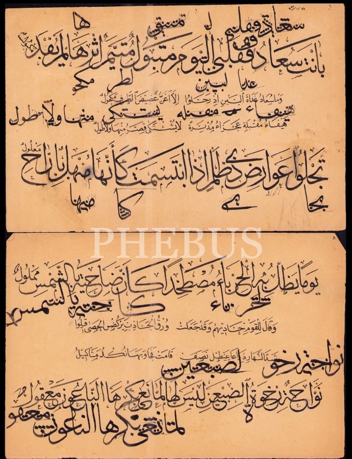 Sülüs-nesih talebe meşki üzerinde hocasının çıkarmaları, 16x23 cm ebatlarında iki sayfa