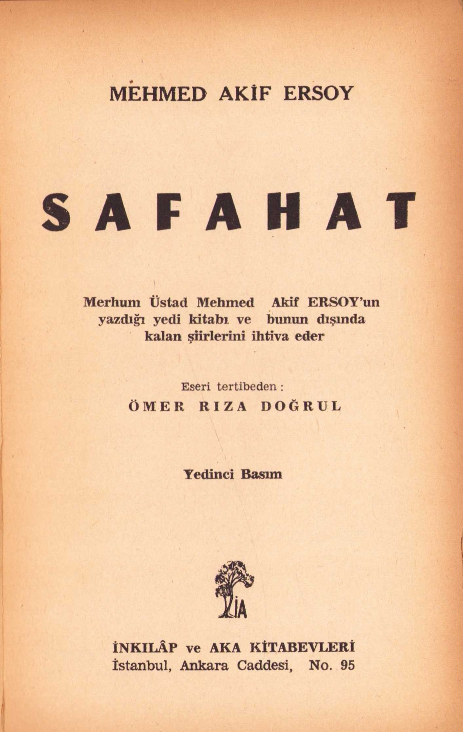 Safahat, Mehmet Akif, yedinci basım, İstanbul, 536 sayfa, 14x20cm