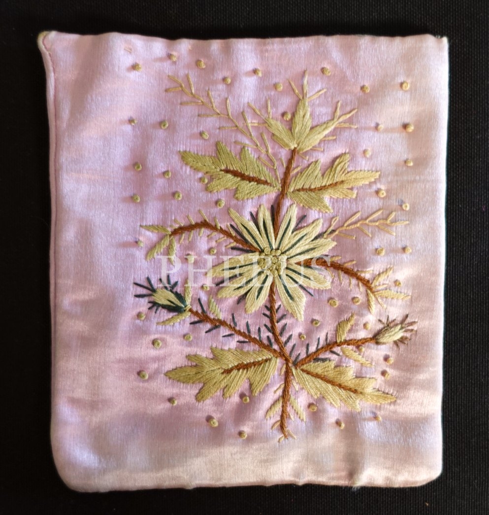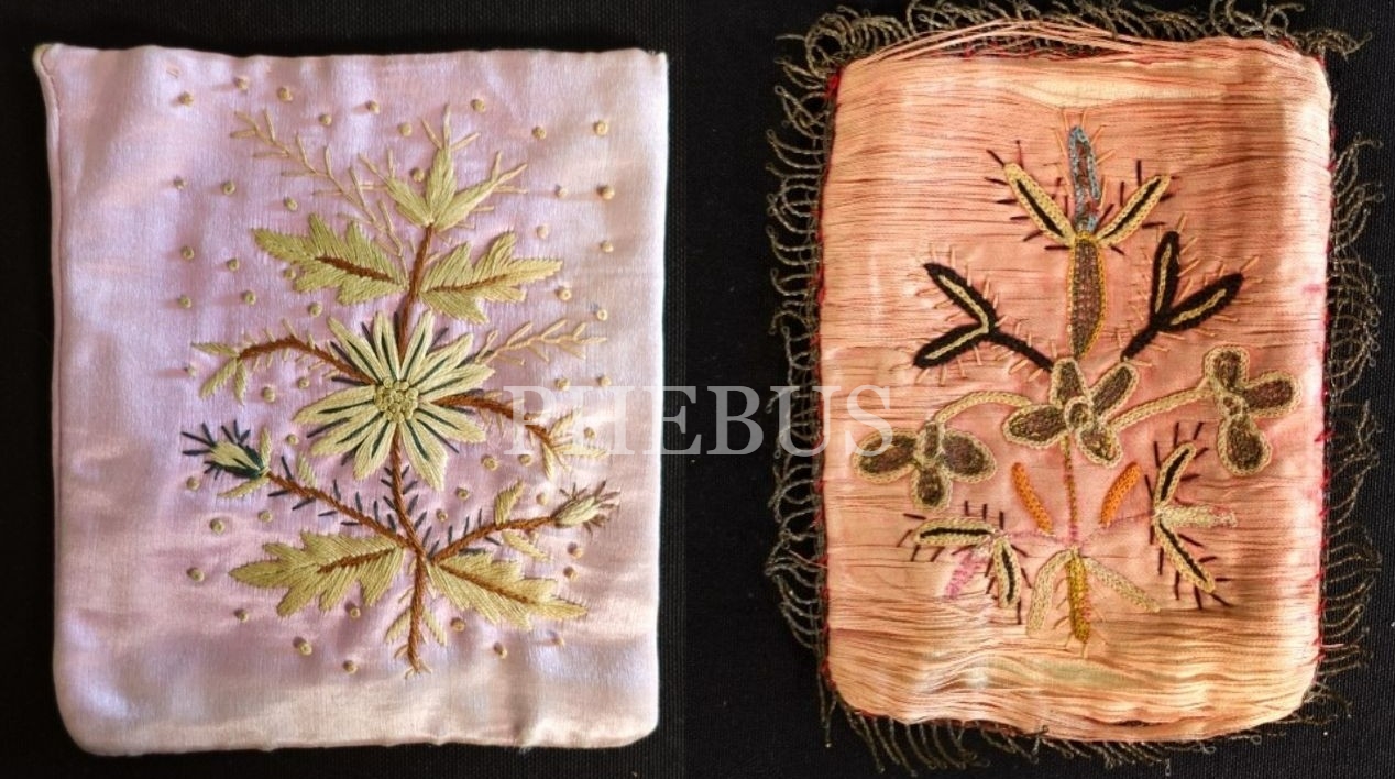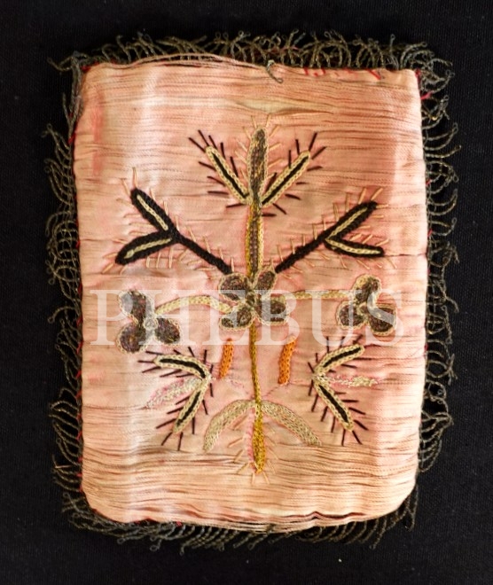 Osmanlı dönemi Hereke ipeğinden işlemeli kitap kesesi, 2 adet, 13x16 cm