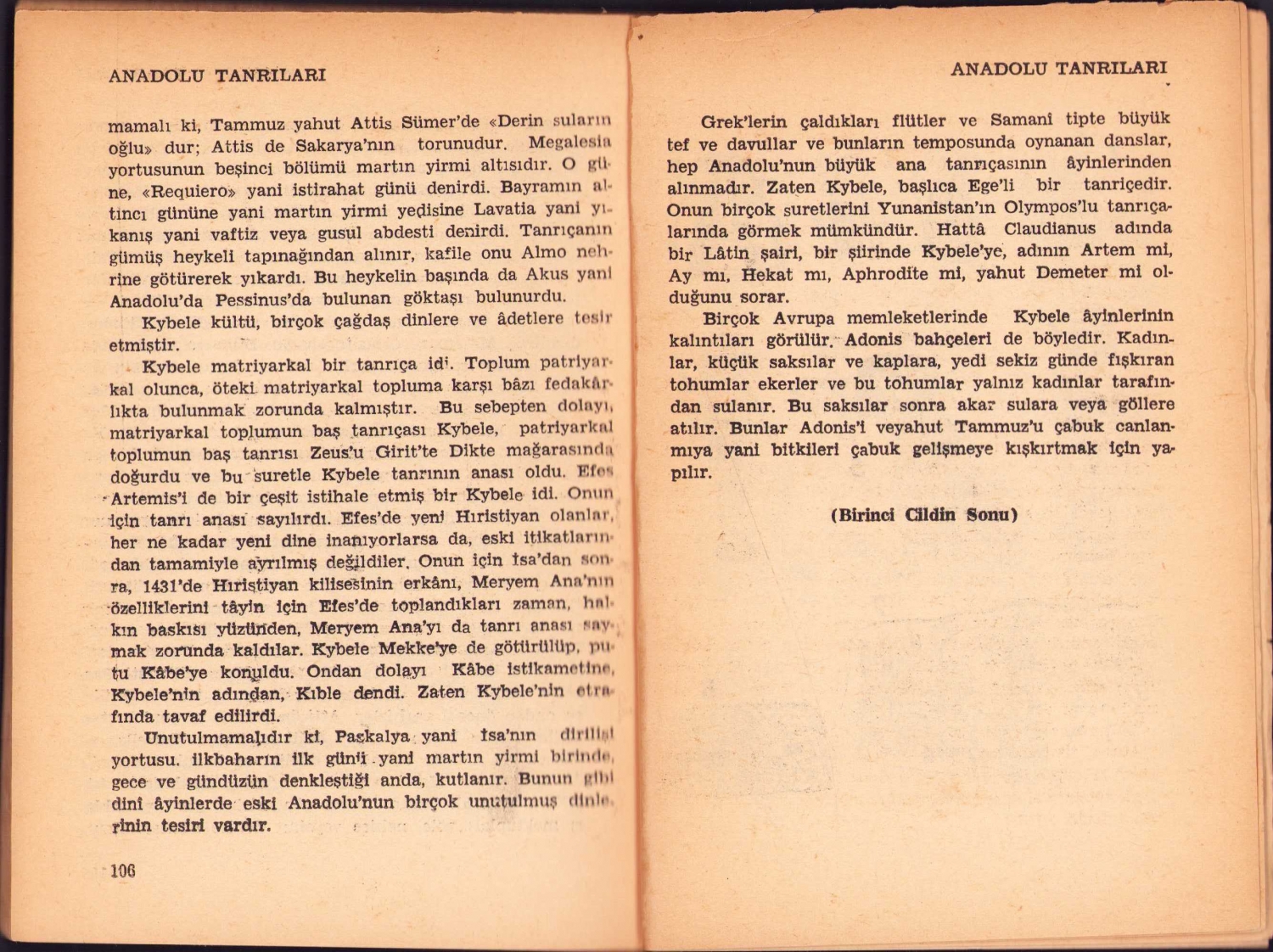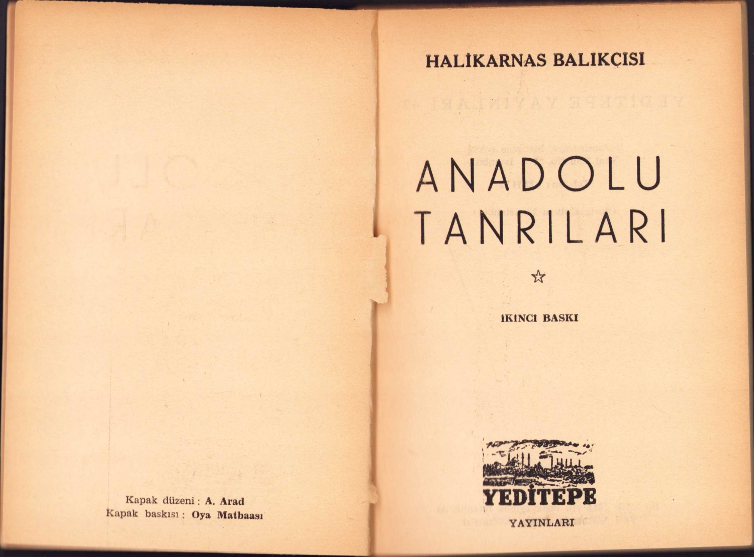 Anadolu Tanrıları, Halikarnas Balıkçısı, ikinci baskı, Oya Matbaası, resimli, 107 sayfa, 12x16cm