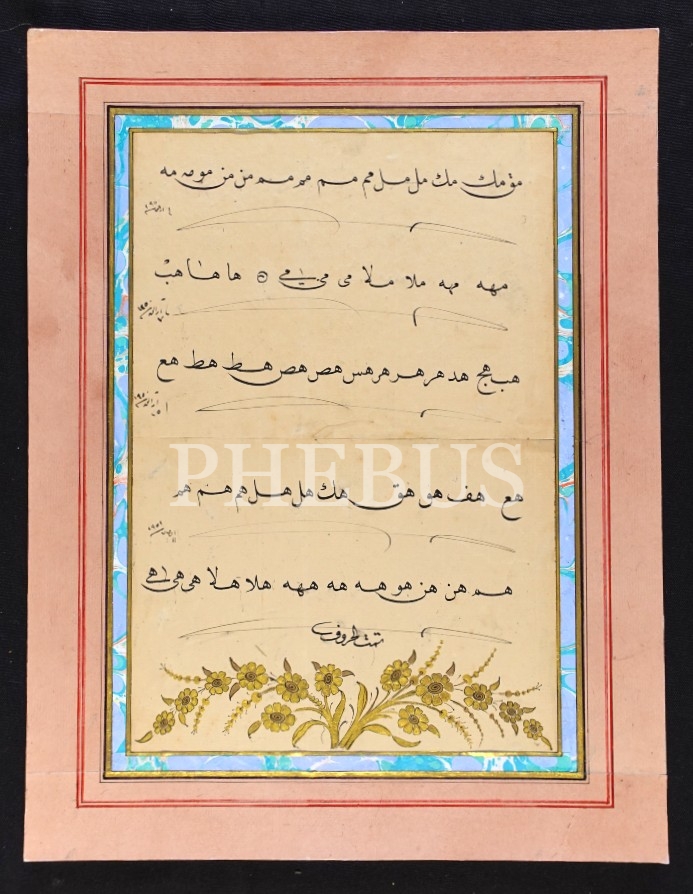 Mustafa Halim Özyazıcı terekesinden tezhiplenmiş nesih hurufat meşki son bölüm, 34x44 cm