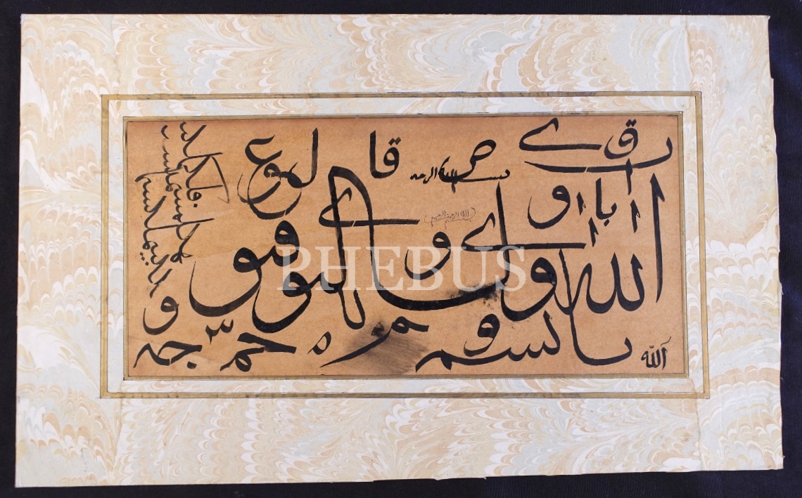Celî sülüs karalama, ebru pervazlı, 38x62 cm