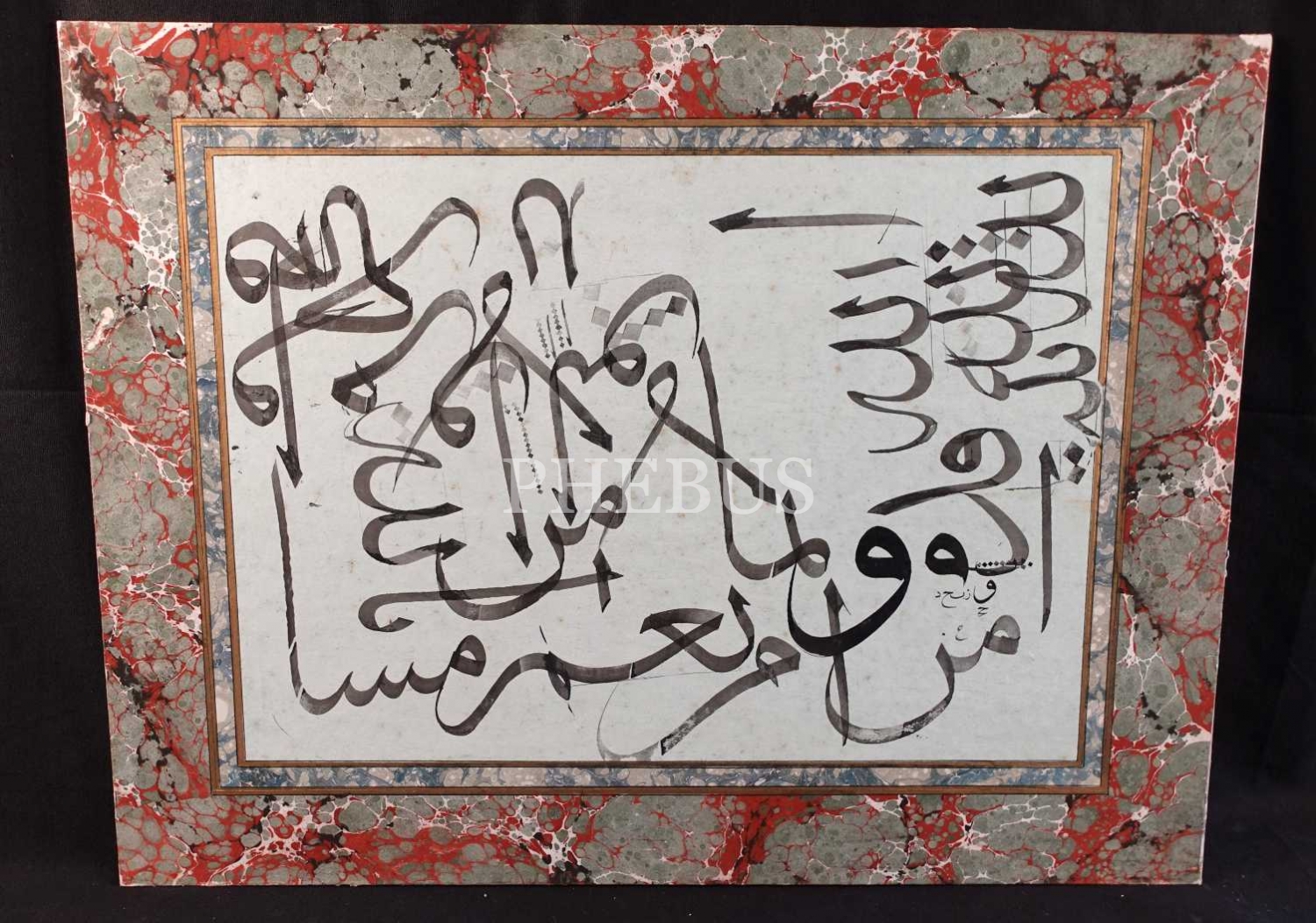 Celî sülüs karalama, ebru pervazlı, 49x64 cm