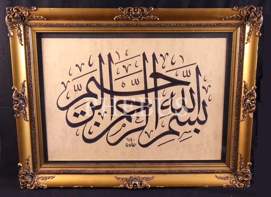 Osman ketebeli, celî sülüs Besmele levhası, 1440 tarihli, ahşap çerçeveli, 63x83 cm