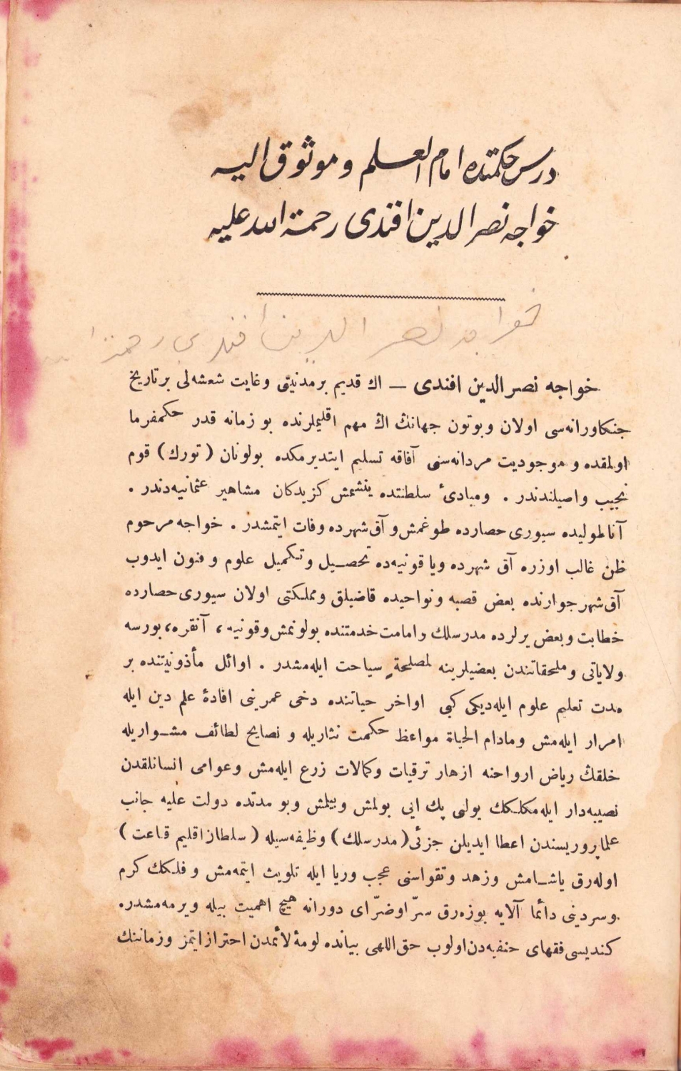 Dersi Hikmetin İmamü'l Ulema ve Mevsuk-ı İleyh, Havace Nasreddin Efendi Rahmetullah, 1325, Osmanlıca,139 sayfa, 16x24cm