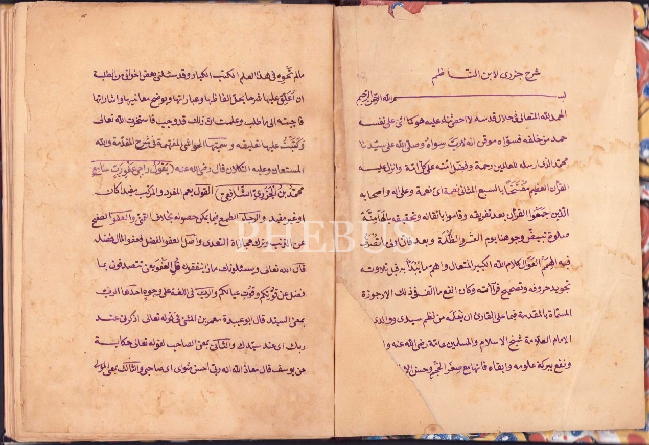 Arapça ŞERHÜ MUKADDİME-İ CEZERÎ, şerh eden: İbn Nazım, Hafız Halil Hilmi ketebeli ve 1352 tarihli, 130 s., 16x21 cm