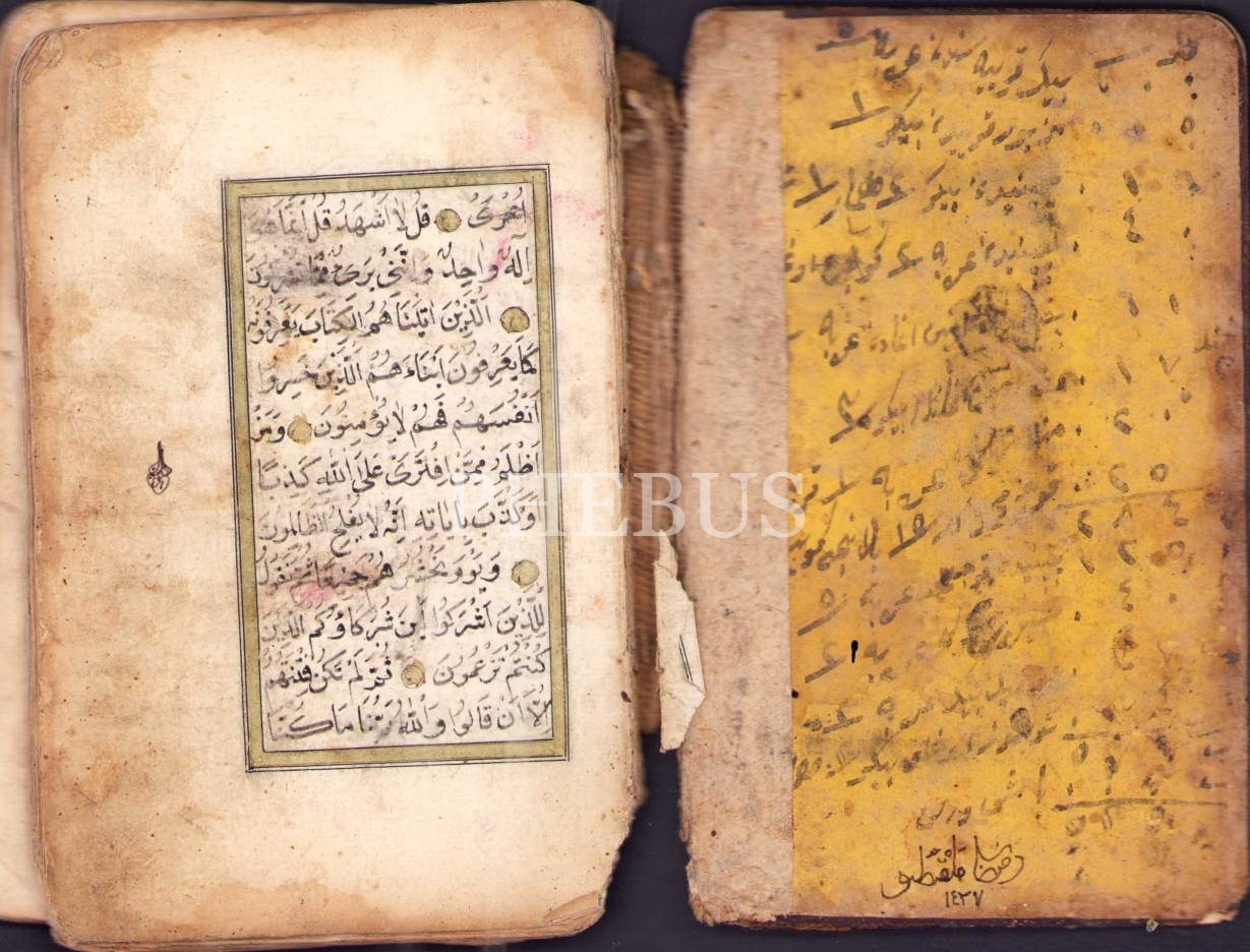 Şemseli deri cildinde EN'ÂM-I ŞERÎF, 134 s. (baştan eksik), 10x15 cm, sayfaları ayrık haliyle