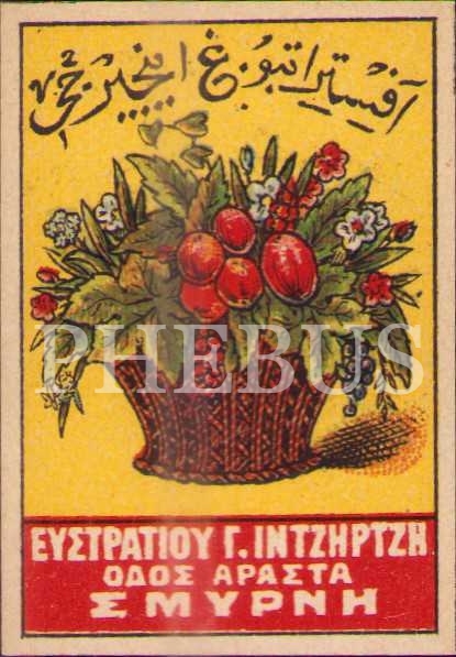 Osmanlıca-Rumca etiket, Efstratiu G.İncirci-Arasta sokak- İzmir, 3x5 cm