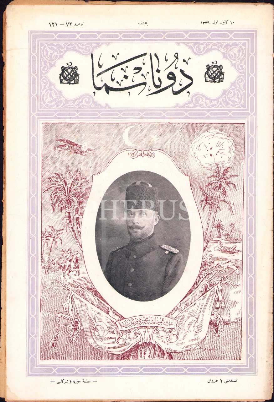 Donanma dergisinin 10 Kanunuevvel 1331 tarihli sayısı, Irak Kumandanı Nureddin Bey kapaklı, 25x37 cm