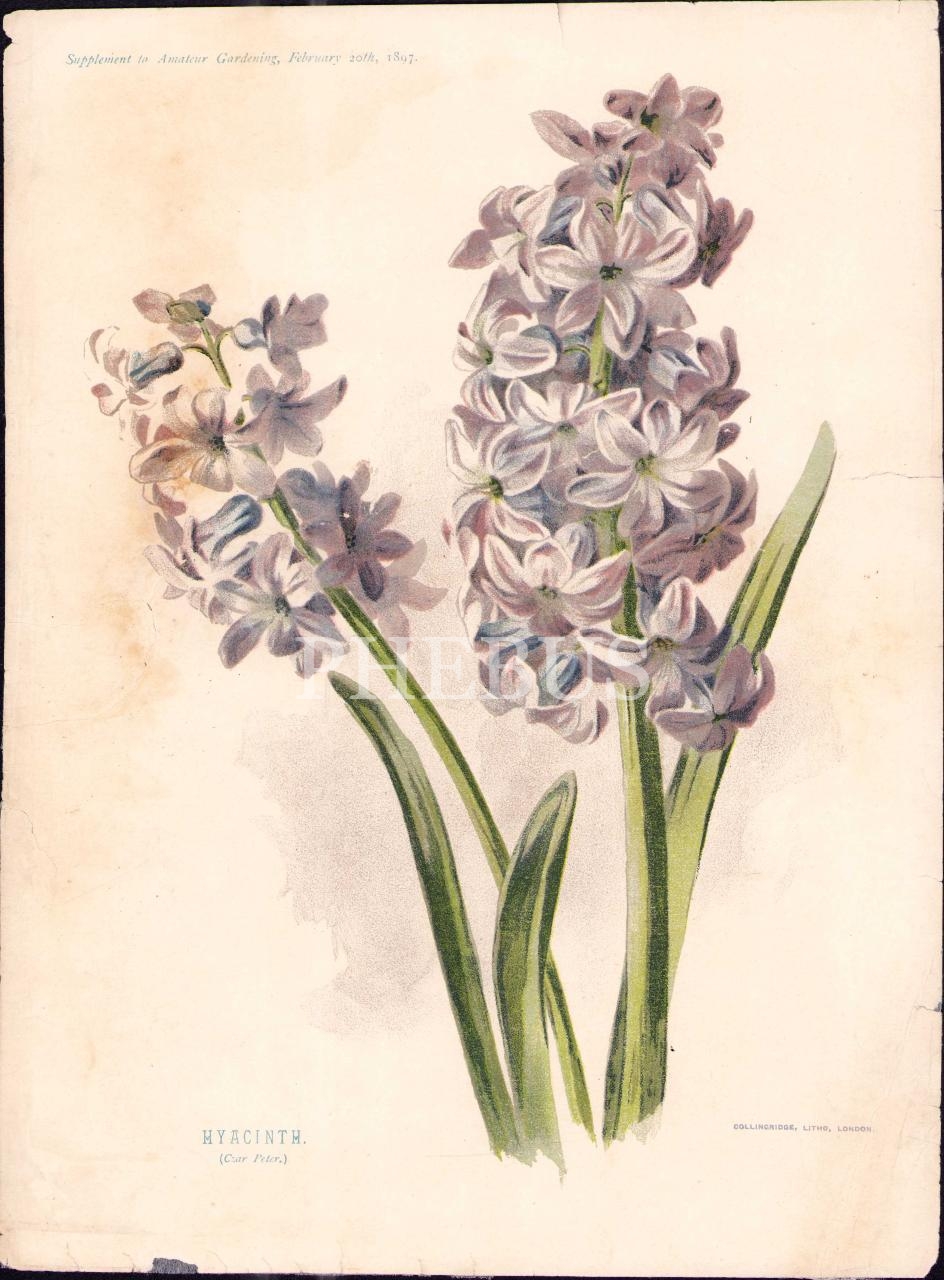 Sümbül gravürü, 22x30 cm, bir kenarı hafif yırtık haliyle