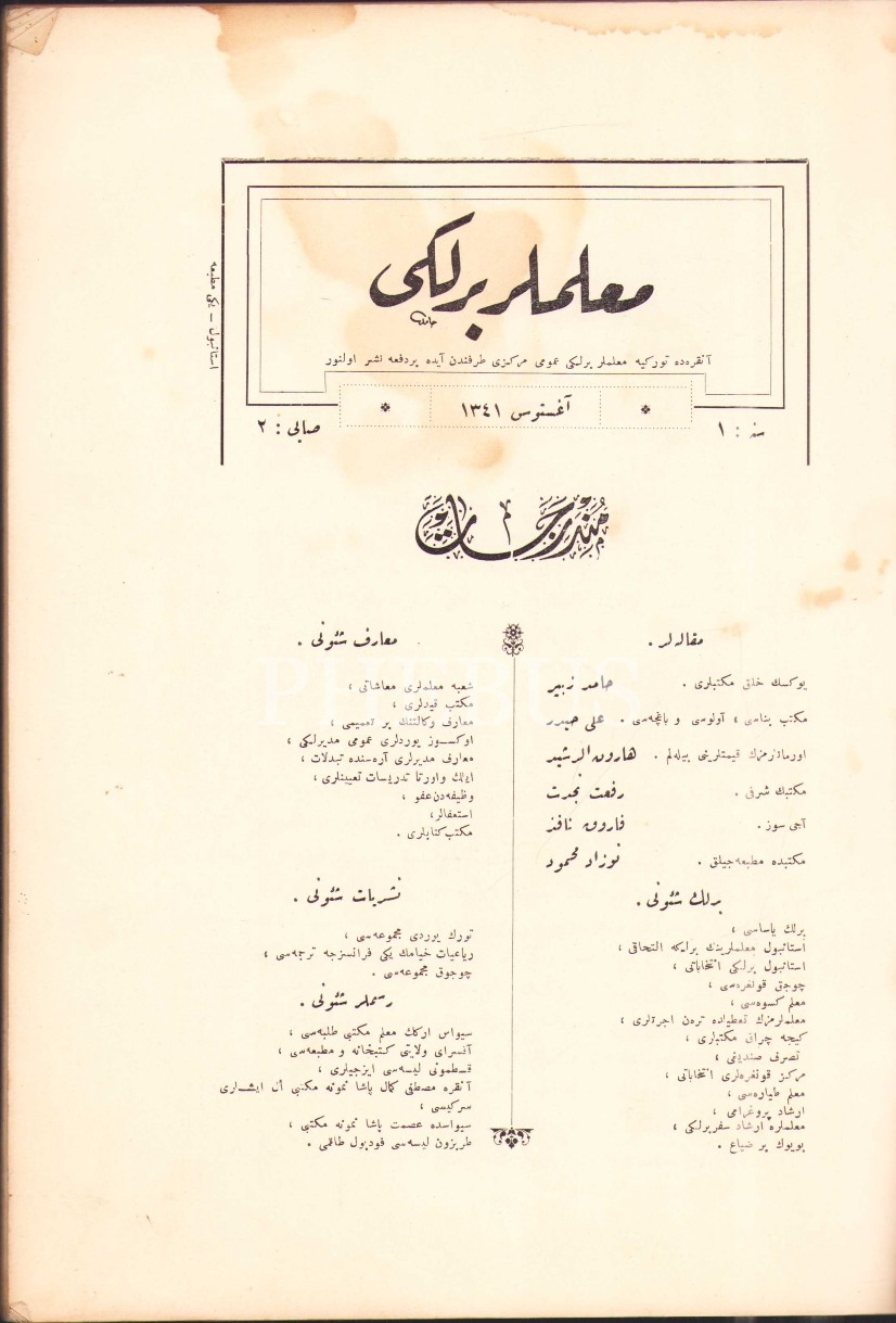 Muallimler Birliği dergisinin 2. sayısı, Ağustos 1341, 19x27 cm