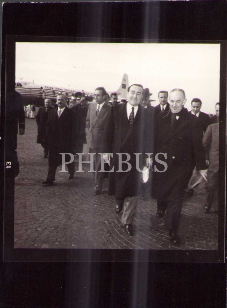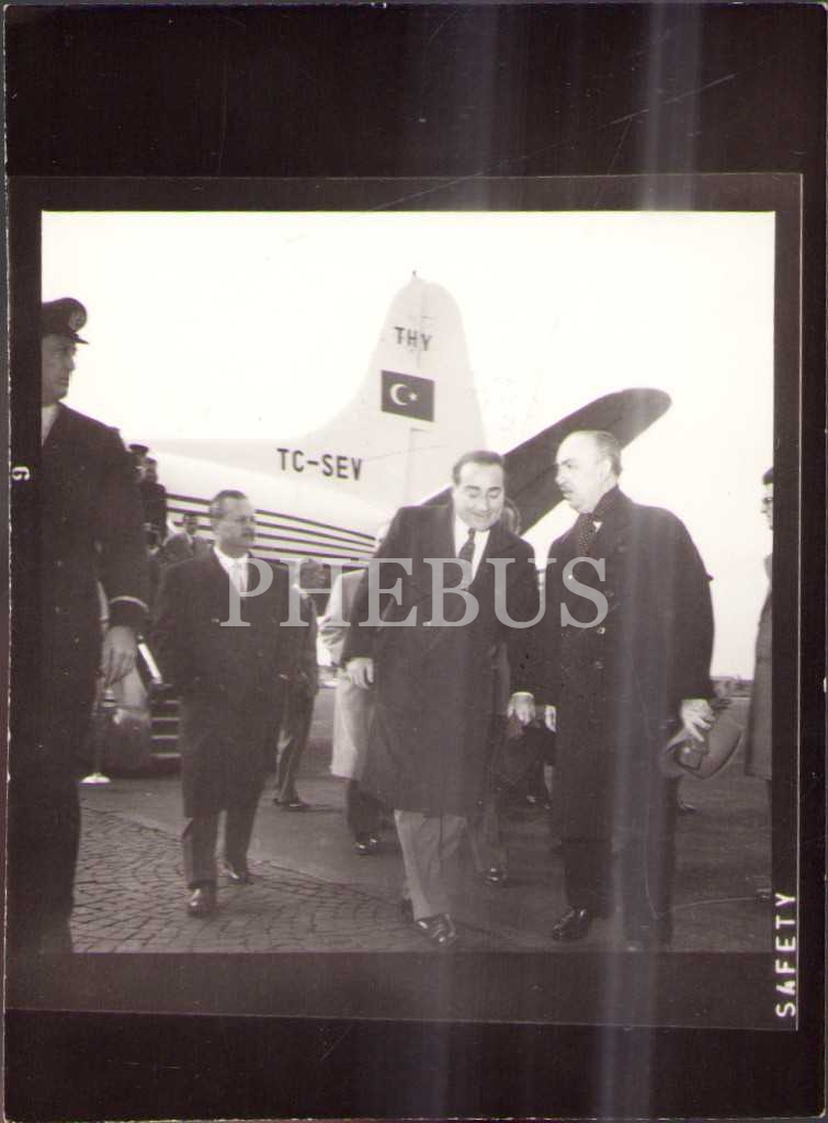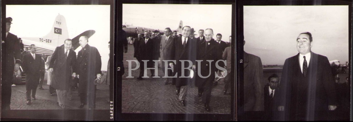 Başbakan Adnan Menderes'in THY uçağı yakınında çekilen 3 fotoğrafı, Publifoto-Roma damgalı, 6x9 cm