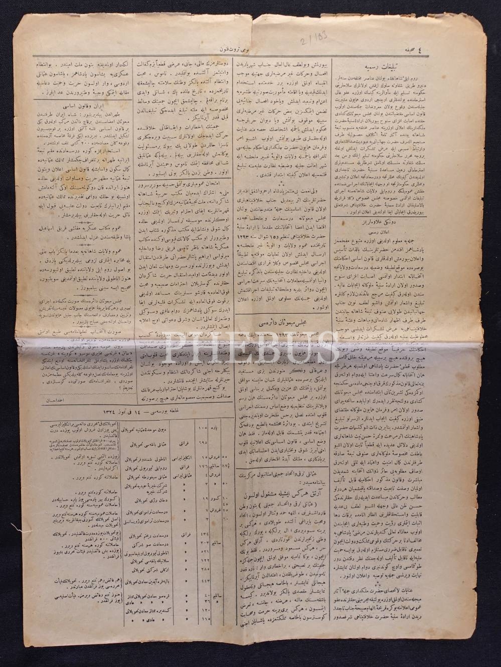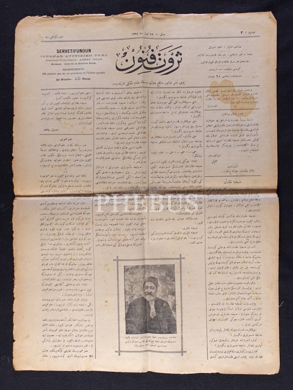 "Menafi-i devlet ve millete hâdim Osmanlı gazetesi" Servet-i Fünun'un Sadrazam Ahmed Vefik Paşa'ya ait kapak görselli sayısı, 15 Temmuz 1324, 35x47 cm