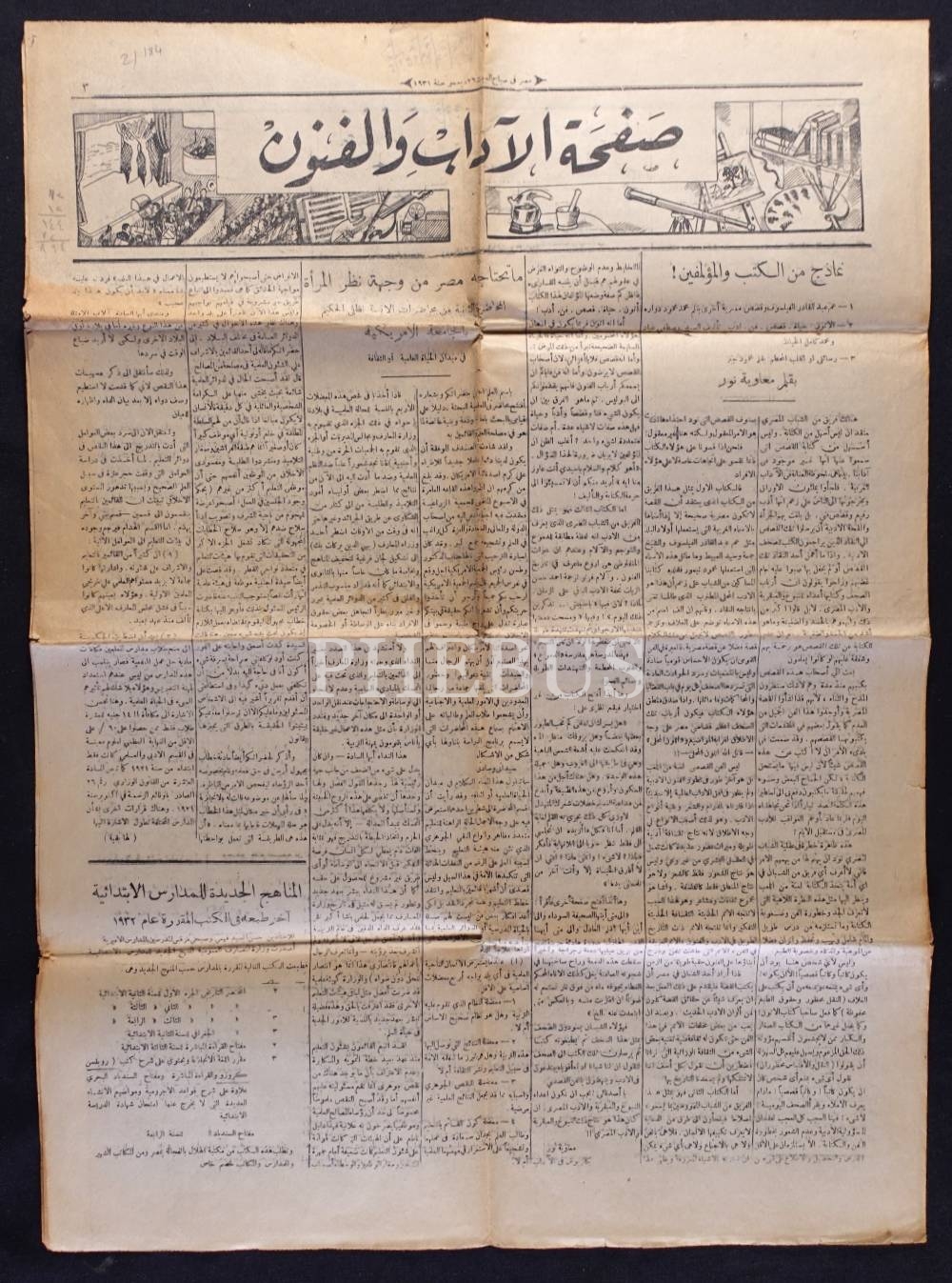 Arapça Safhatü'l-Âdâb ve'l-Fünûn [Edebiyat ve Sanat] gazetesinin 26 Aralık 1931 tarihli sayısı, 45x62 cm