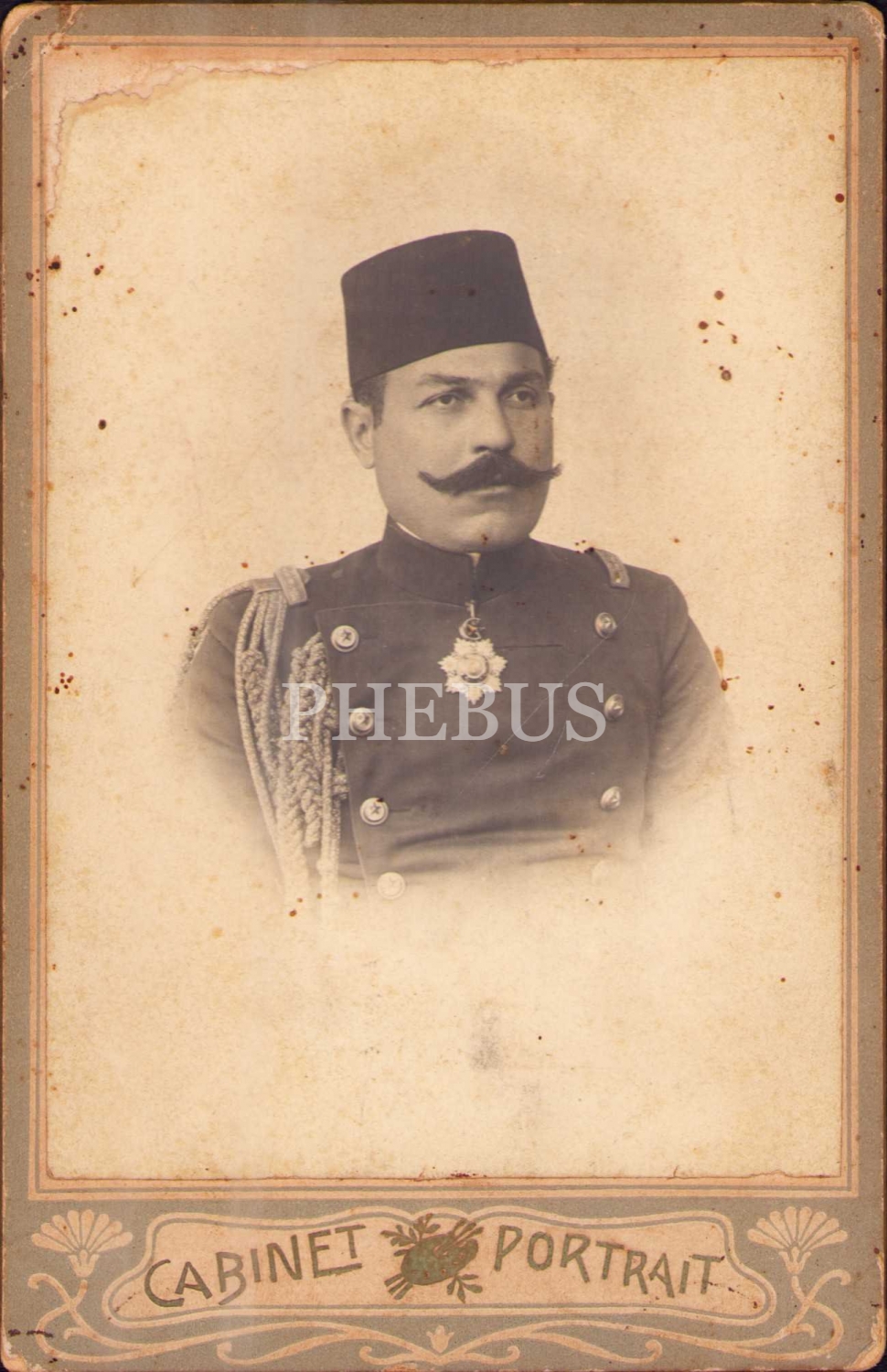 Madalyalı Osmanlı subayının 1321 tarihli ve ithaflı kabin fotoğrafı, 11x17 cm