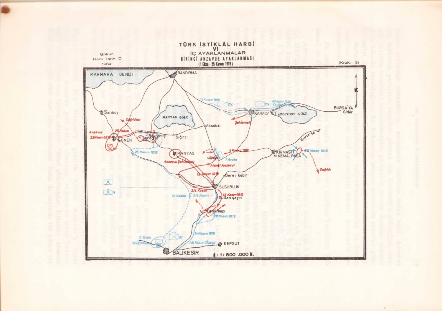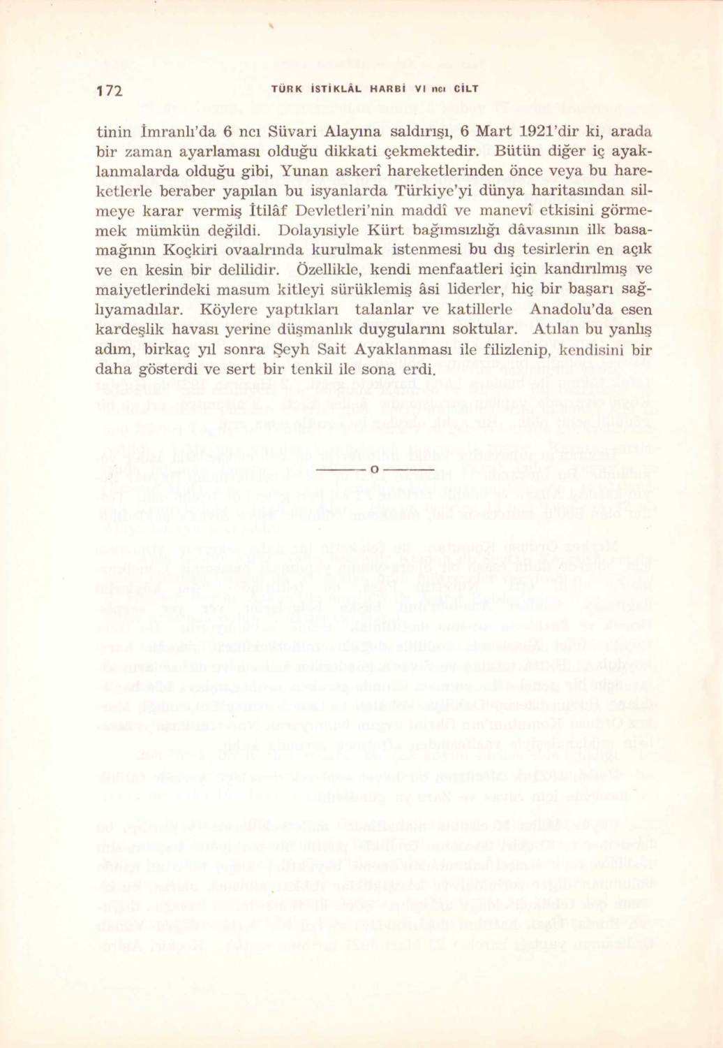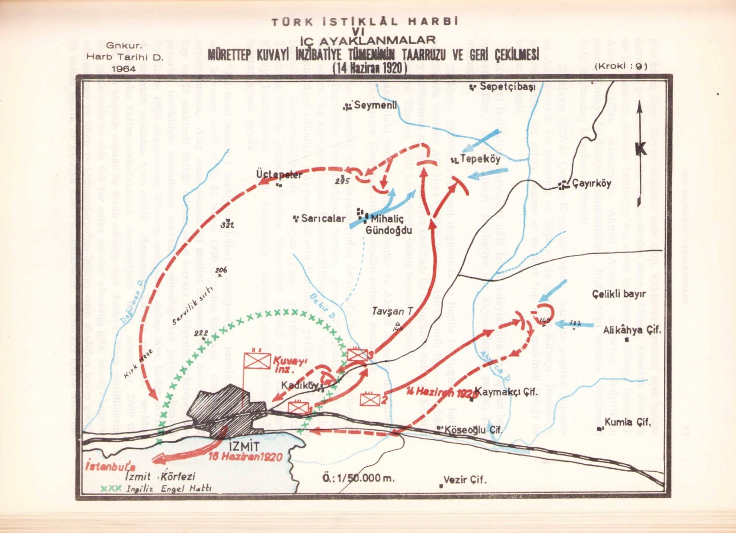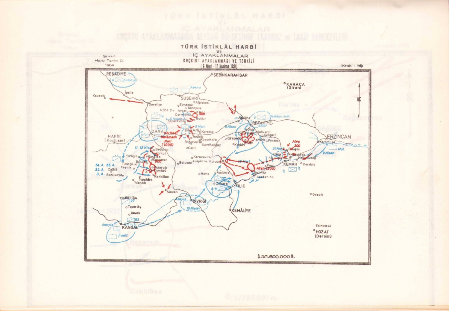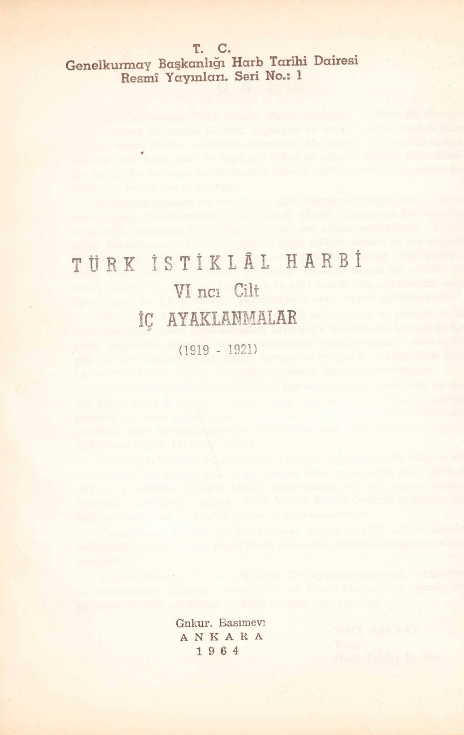 Türk İstiklal Harbi VI. Cilt İç Ayaklanmalar (1919 - 1921), T. C. Genelkurmay Başkanlığı Harb Tarihi Dairesi Resmi Yayınları, Seri No. 1, Ankara, 1964, haritalı, 172 sayfa, 17x24cm