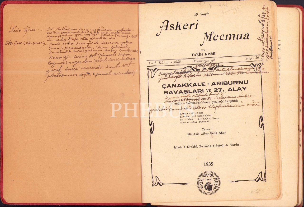 Askerî Mecmua'nın Tarih Kısmı-40. sayı: Çanakkale-Arıburnu Savaşları ve 27. Alay, yazan: Albay Şefik Aker, 1 Birincikanun 1935, 98 s., 19x26 cm
