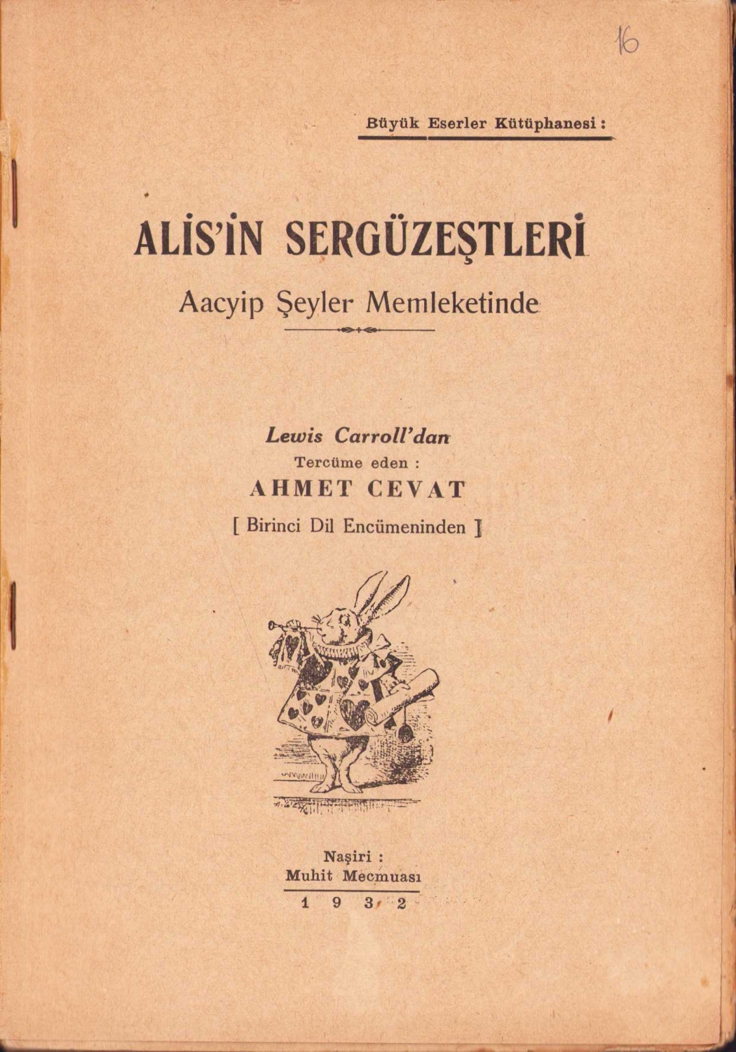 Büyük Eserler Kütüphanesi: Alis'in Sergüzeştleri - Acayip Şeyler Memleketinde, Lewis Carrol, çev., Ahmet Cevat, Muhit Mecmuası,1932, resimli, 120 sayfa, 15x21cm