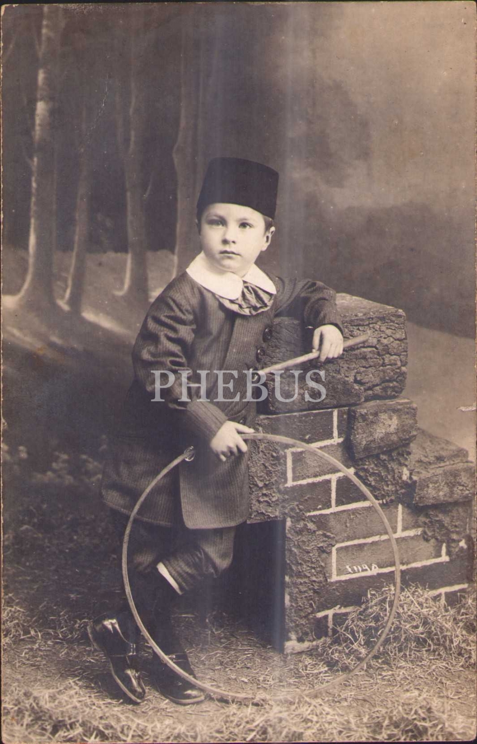Oyuncağıyla poz veren fesli erkek çocuğu, Photo Resna-Stamboul, ithaflı ve 1330 tarihli postadan geçmiş kart