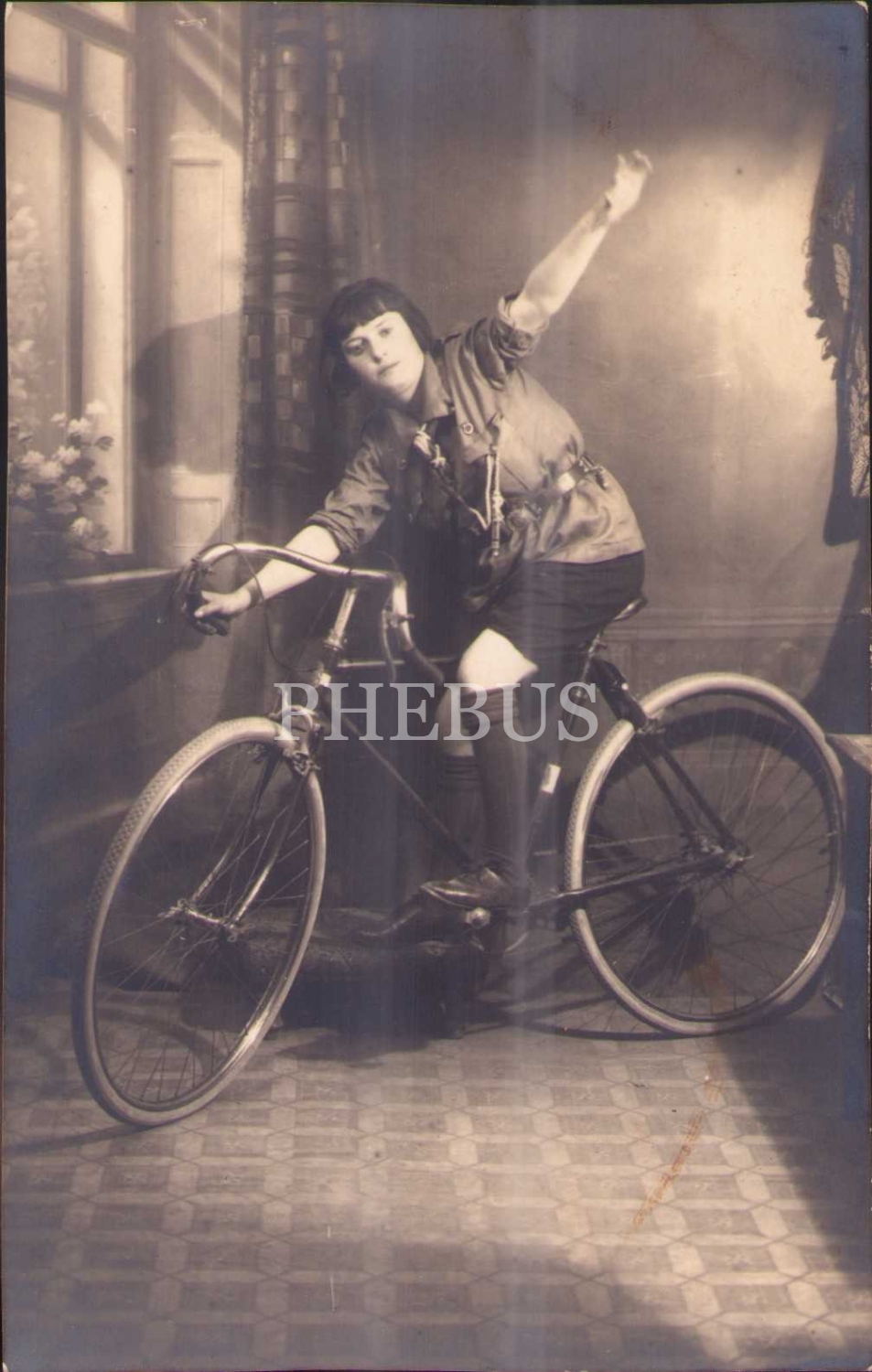 Bisiklet üzerinde poz veren genç kız, Photo Abel-Taxim damgalı