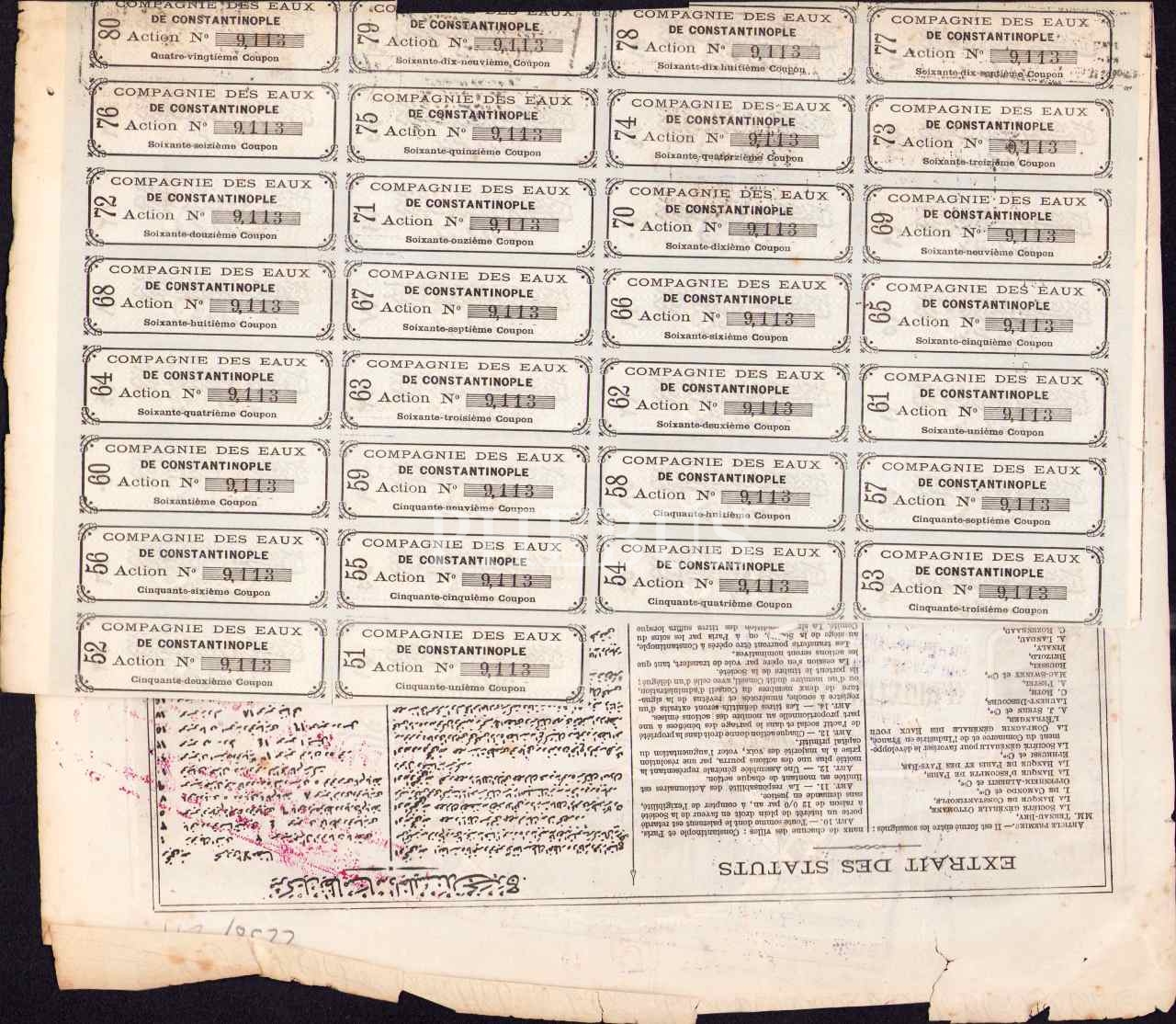 Dersaadet Su Şirketi'ne ait Osmanlıca-Fransızca hisse senedi, 29x44 cm