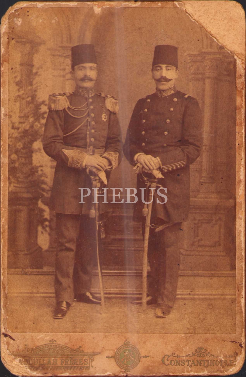 Kılıçlarıyla poz veren iki Osmanlı subayı, Abdullah Freres [Biraderler] Fotoğrafhanesi-Constantinople