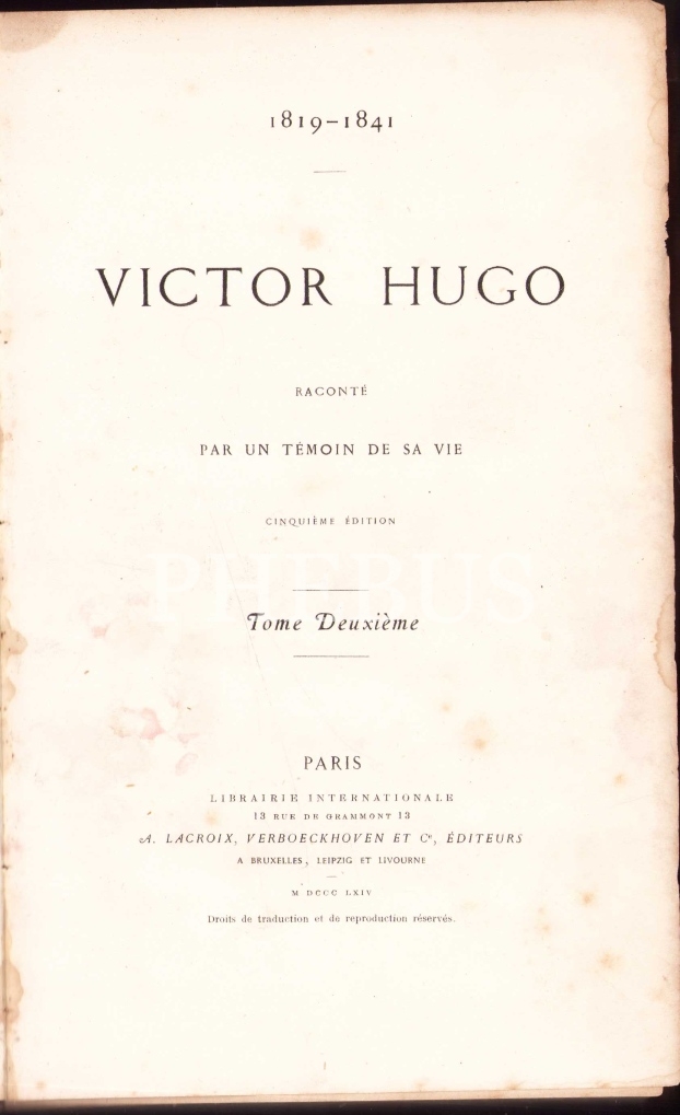 Fransızca VİCTOR HUGO RACONTE PAR UN TEMOİN DE SA VIE (2. Cilt), Paris, 487 s., 15x23 cm
