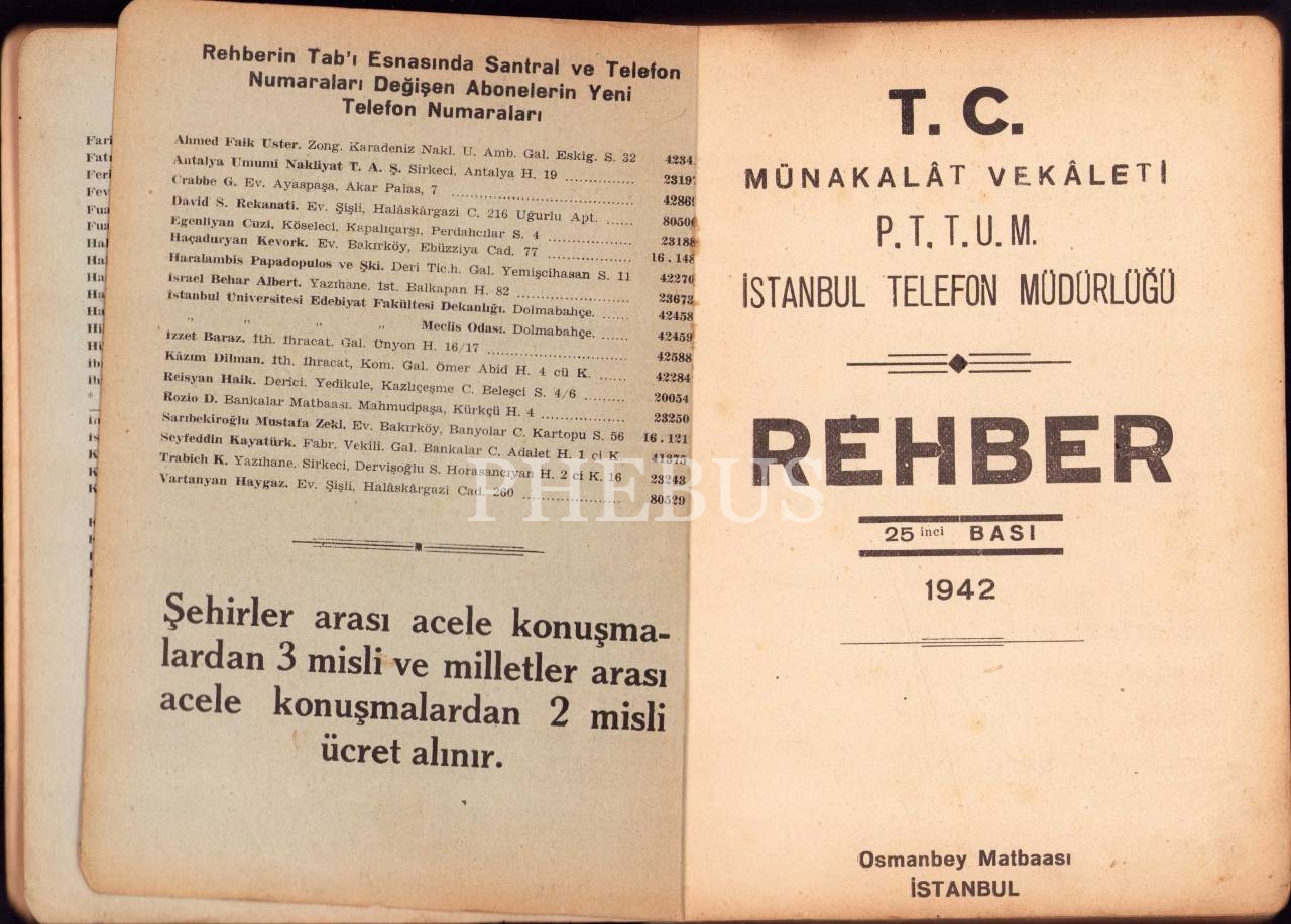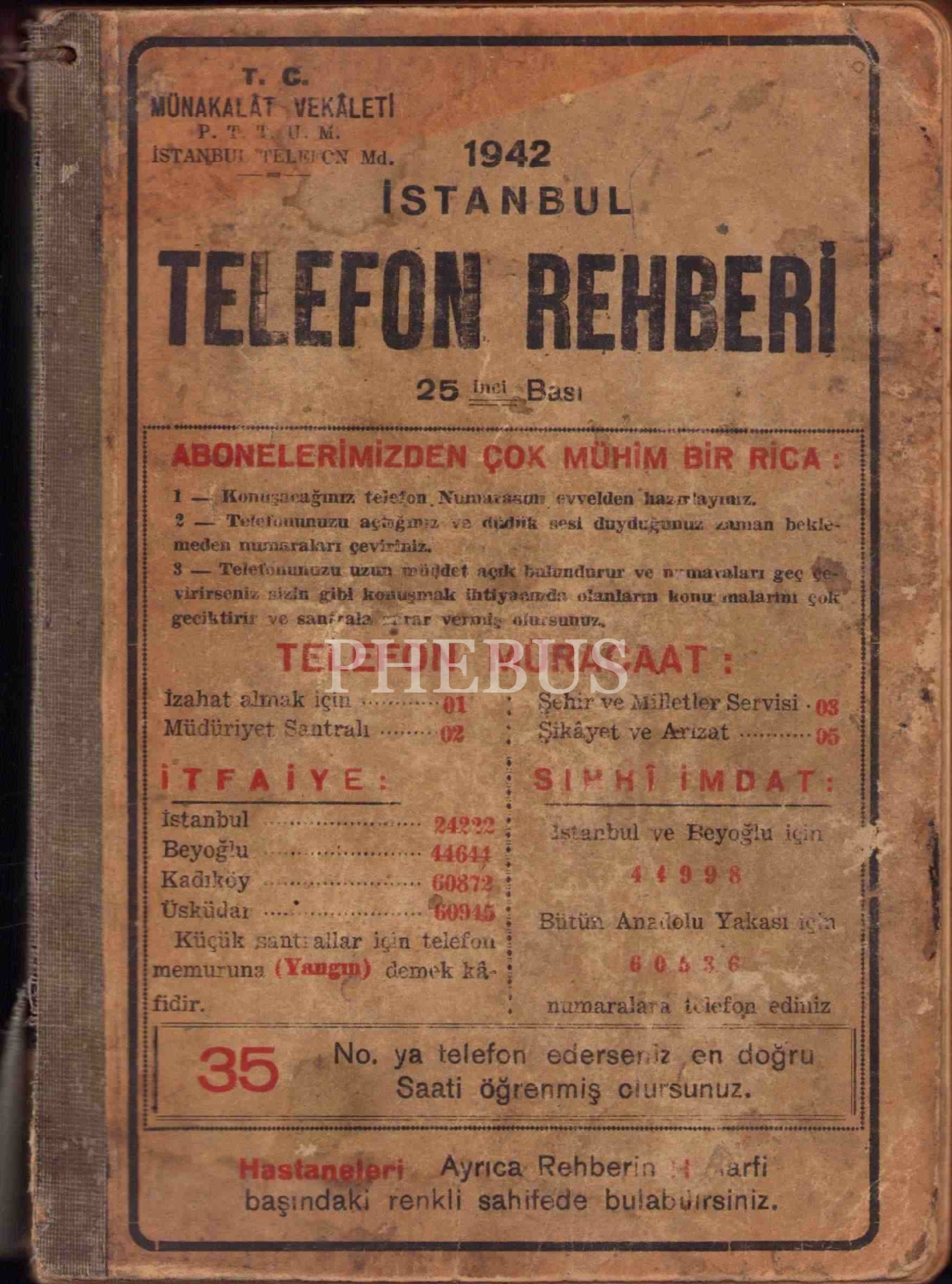 İSTANBUL TELEFON REHBERİ 1942, 475 s., 14x20 cm