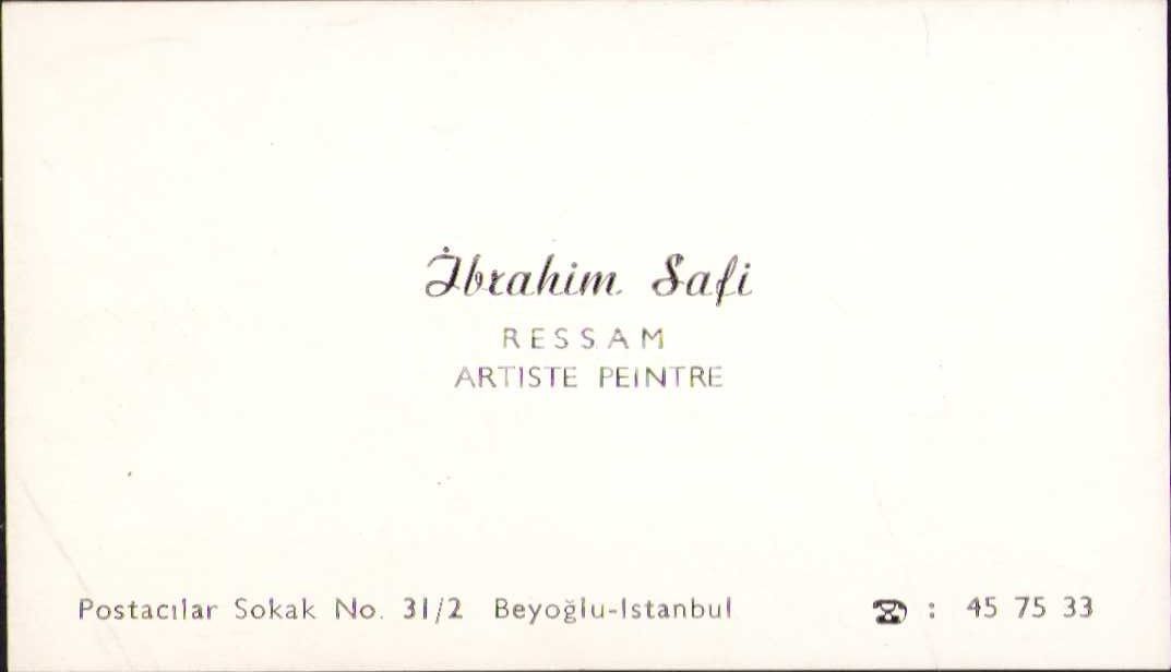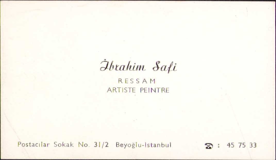 Ünlü ressamlarımızdan İbrahim Safi'nin kartviziti, arkası ithaflı
