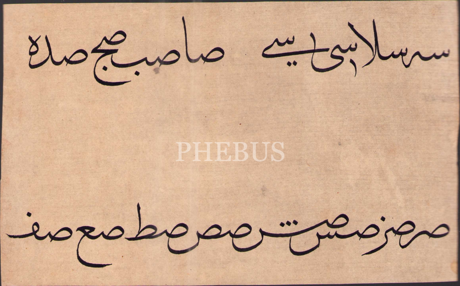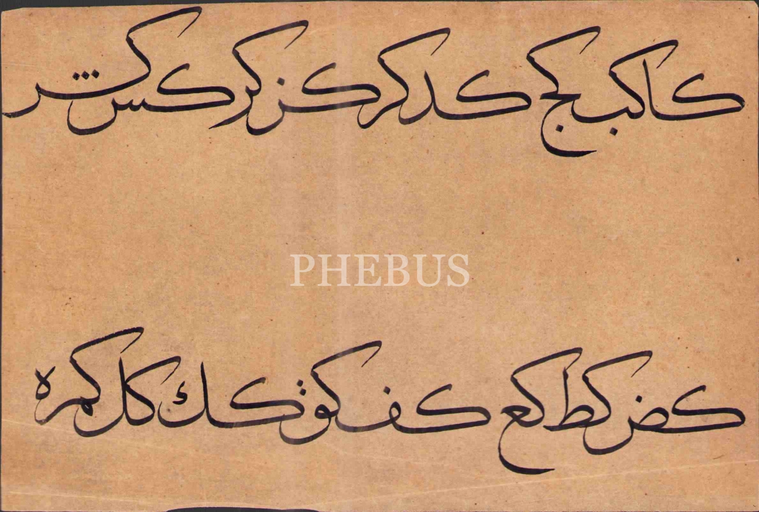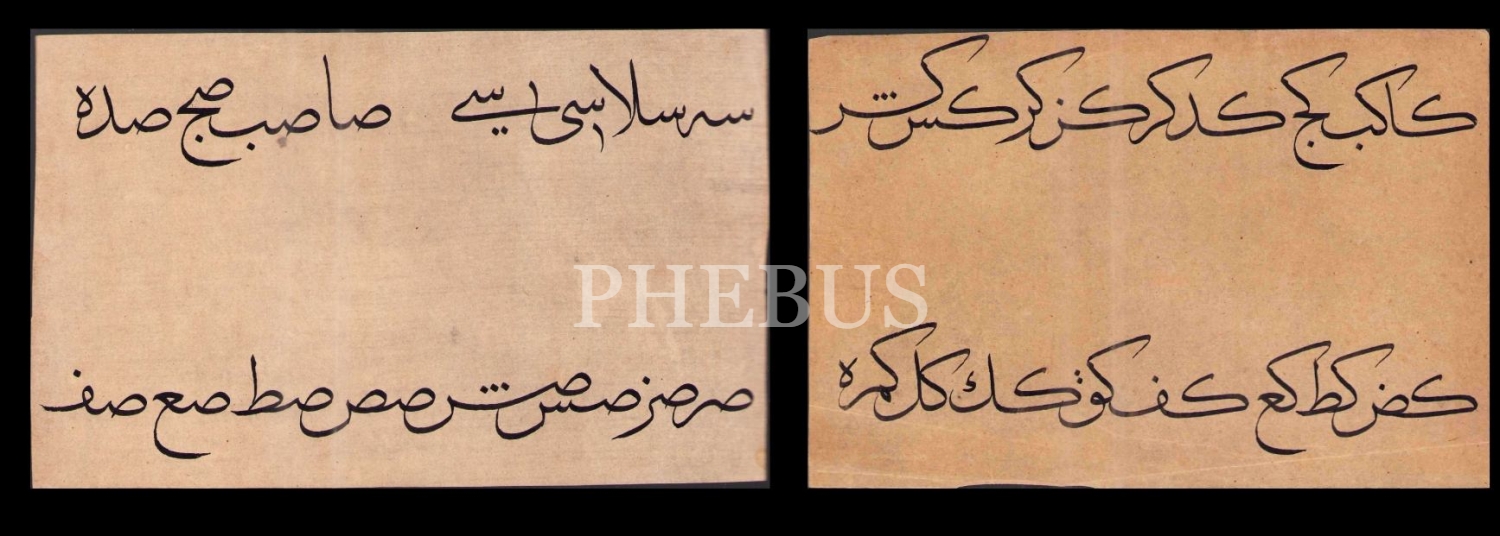 Hoca işi sülüs hurufat meşkinden "sin", "sad" ve "kef" birleşimleri,12x20 cm, iki sayfa halinde