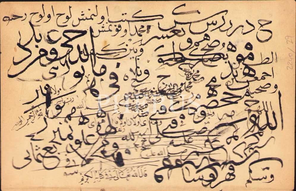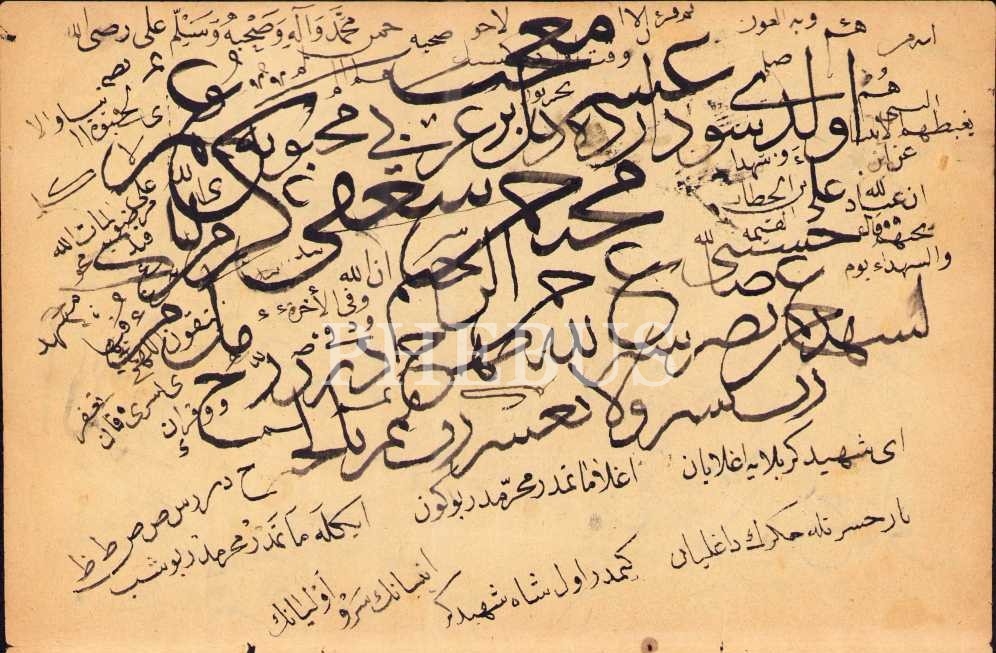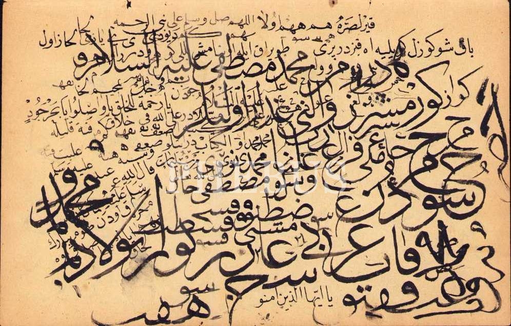 Beşiktaşlı Nuri Korman ketebeli sülüs-nesih önlü arkalı karalama, 23x30 cm