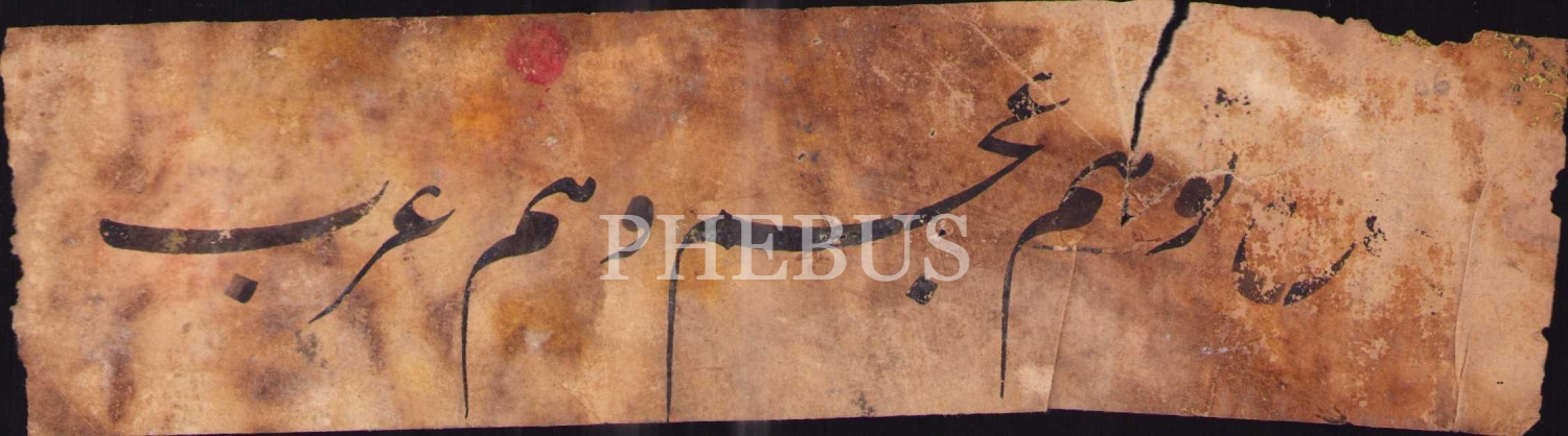 Halim Özyazıcı terekesinden baş kısmı silinmiş ta'lik bir satır: "... hem Acem ve hem Arab", 5x19 cm
