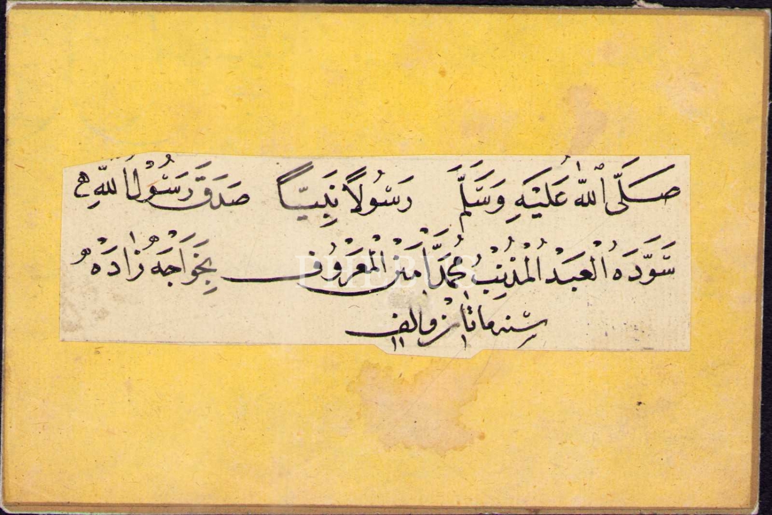 Hocazâde [Mehmed] Emin Efendi'nin nesih ketebe sayfası , 3x10 cm