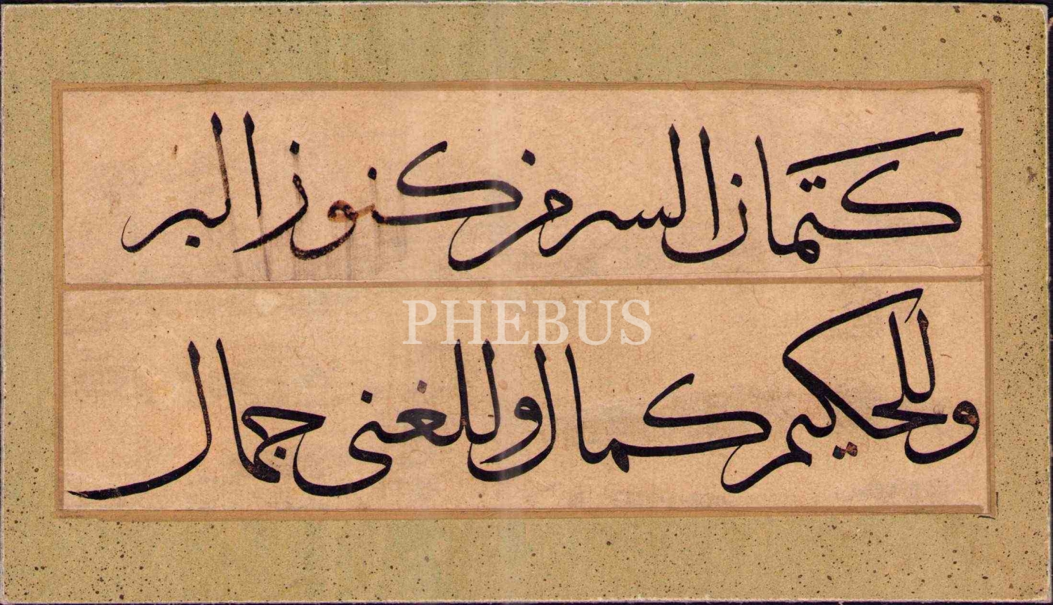 "Kitmânü's-sırri min künûzu'l-birri ve li'l-hakîmi kemâl ve li'l-ganiyyi cemâl [Sır tutmak iyilik hazinelerindendir. Bilge kişiye olgunluk, zengine güzellik verir]"